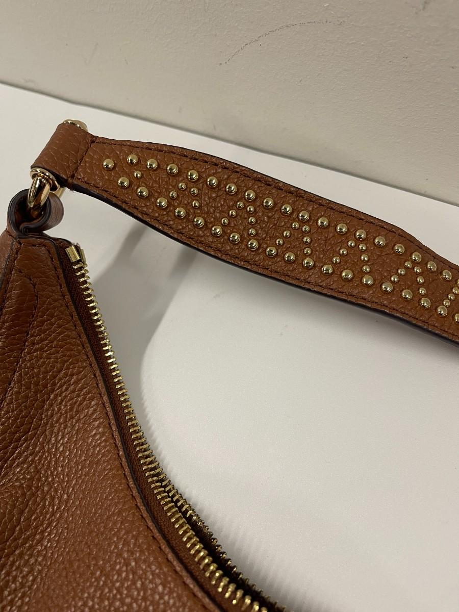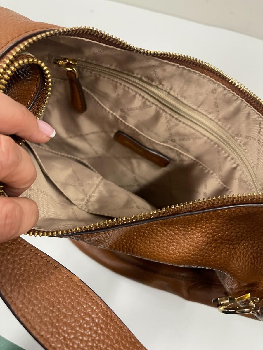 Michael Kors brown pebbled leather hobo bag. Excellent condition with minimal signs of wear. Handle has gold tone embellishments along the handle. Approximately 12" x 14".