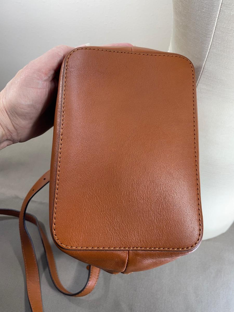 NWOT in excellent clean condition. Leather trim and bottom of bag. Includes dust bag. 12” wide by 9” high.