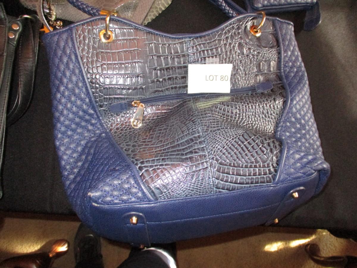 various purses. Gray Michael Kors Purse Not Real, Blue billfold, blue Purse