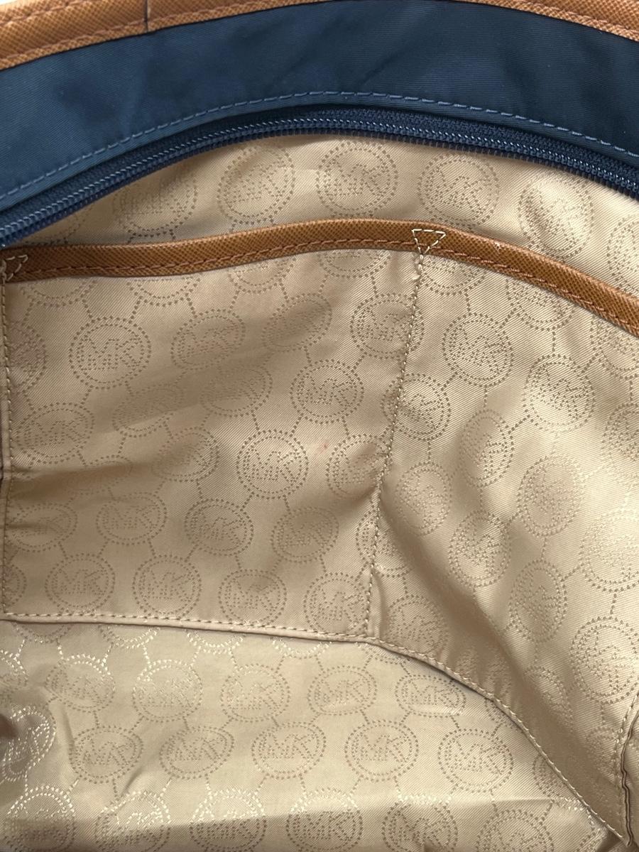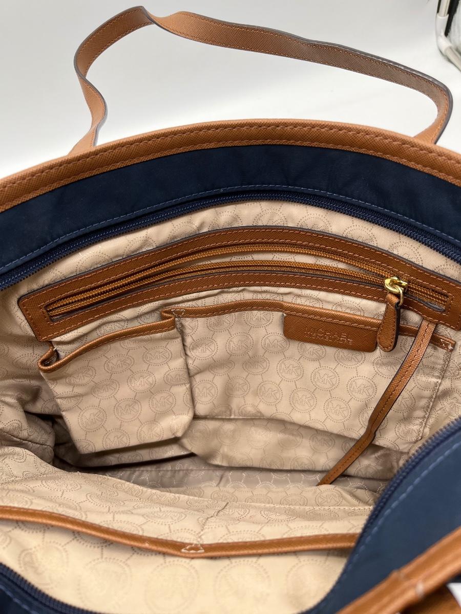 MICHAEL KORS ~ Kempton ~ Nylon Satchel Tote In Navy & Brown