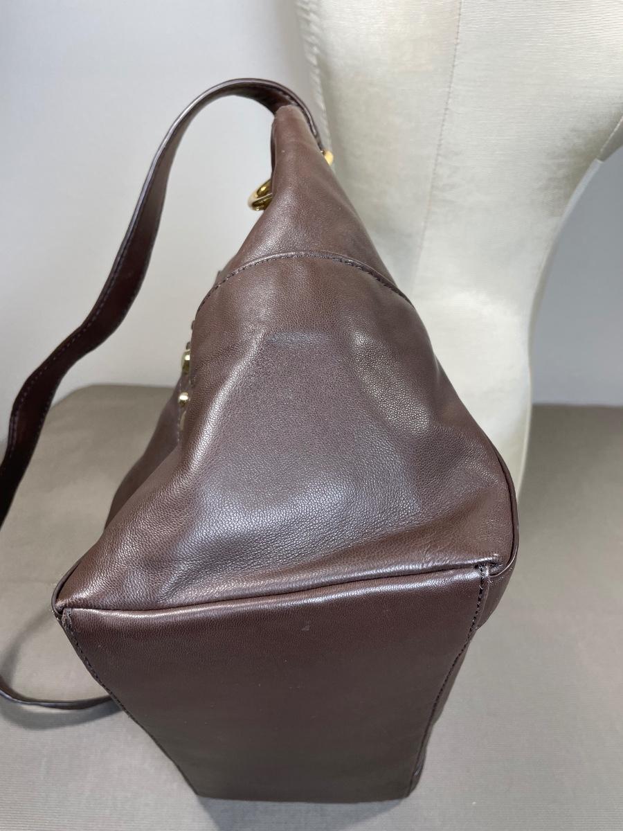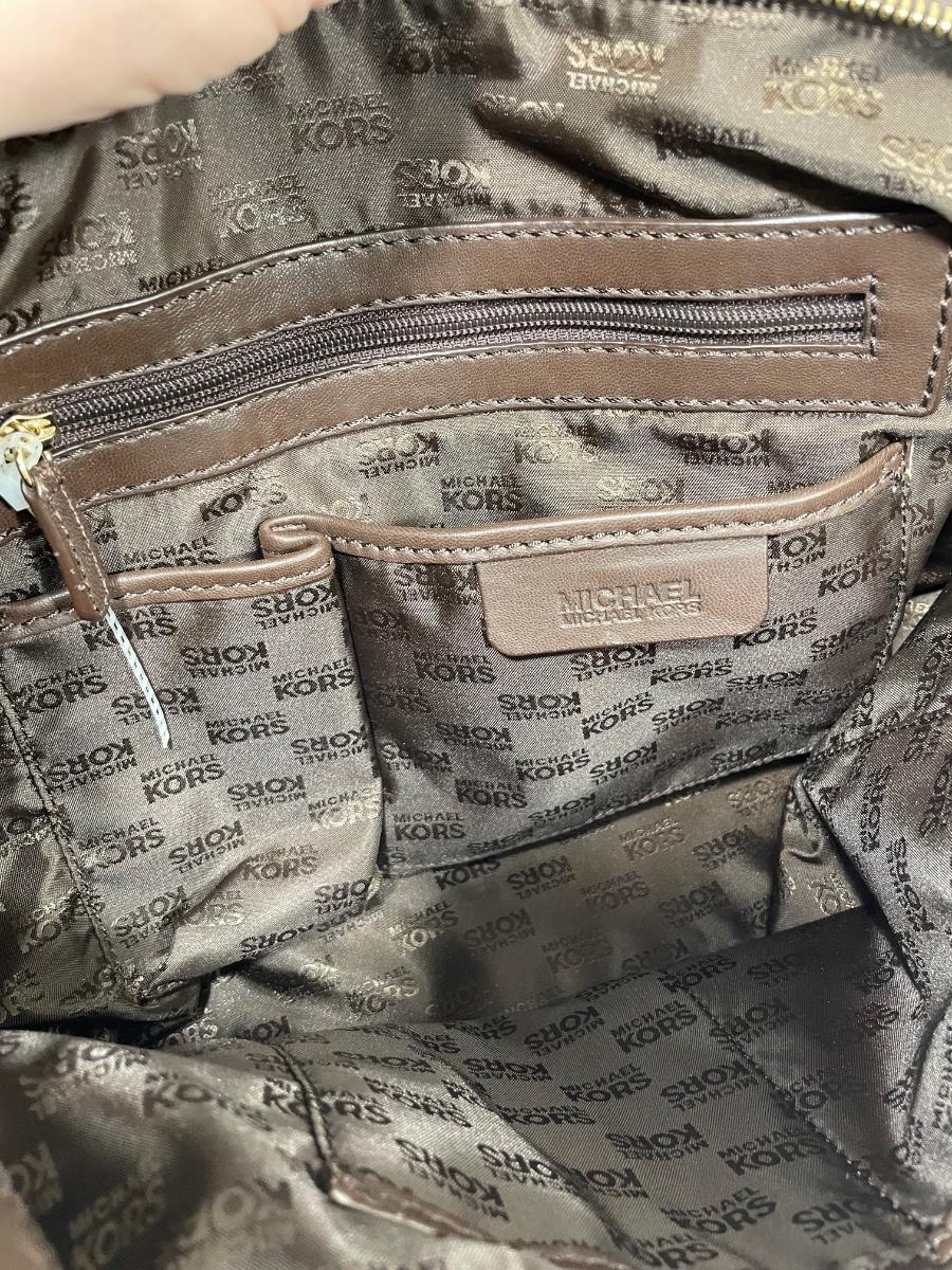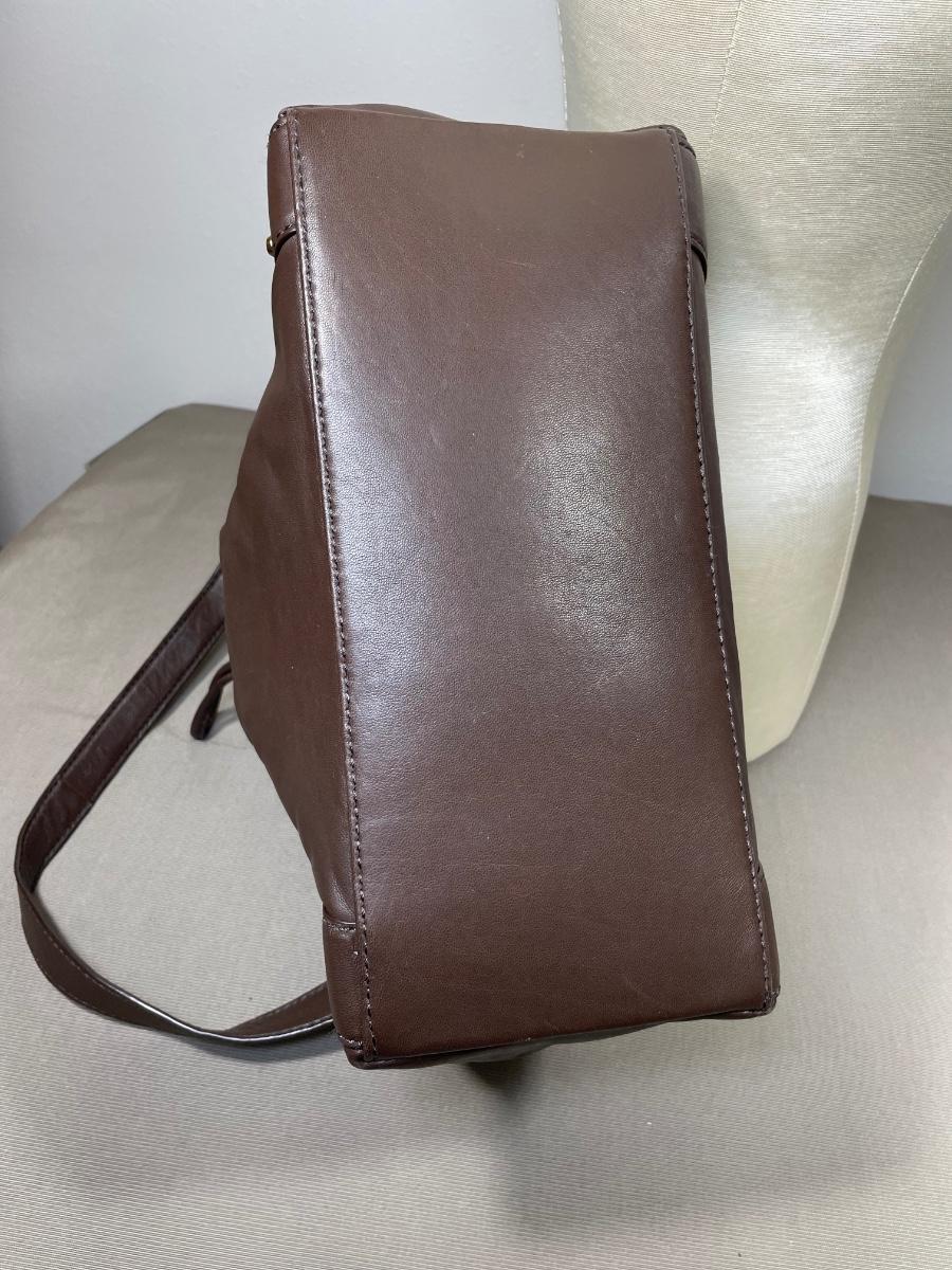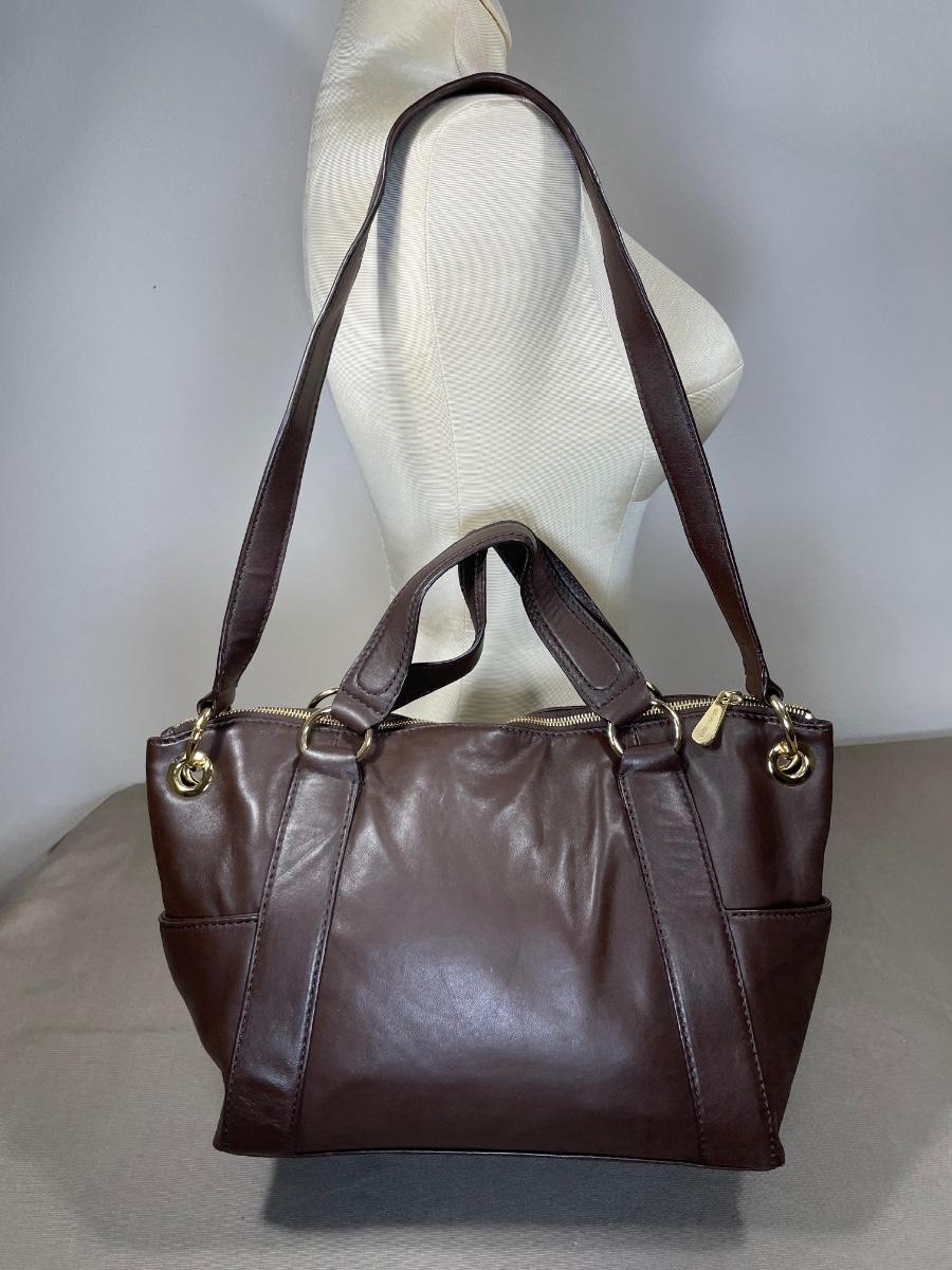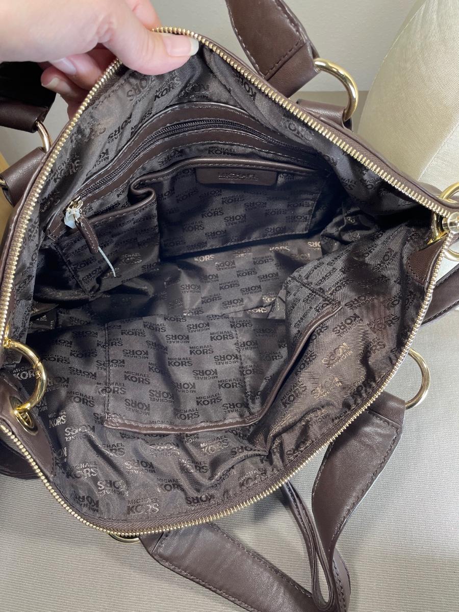 NWOT brown smooth leather with gold tone stud detail and removable crossbody strap.