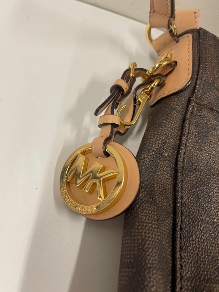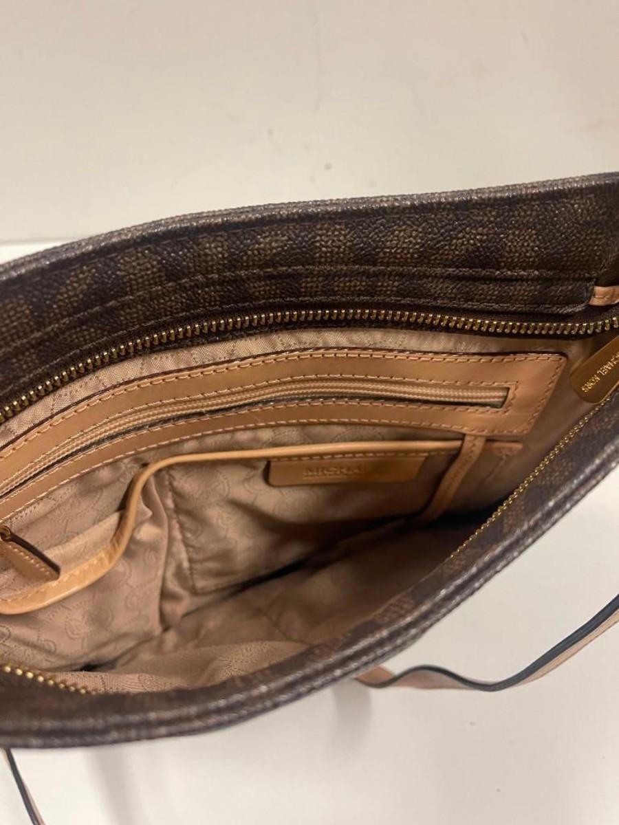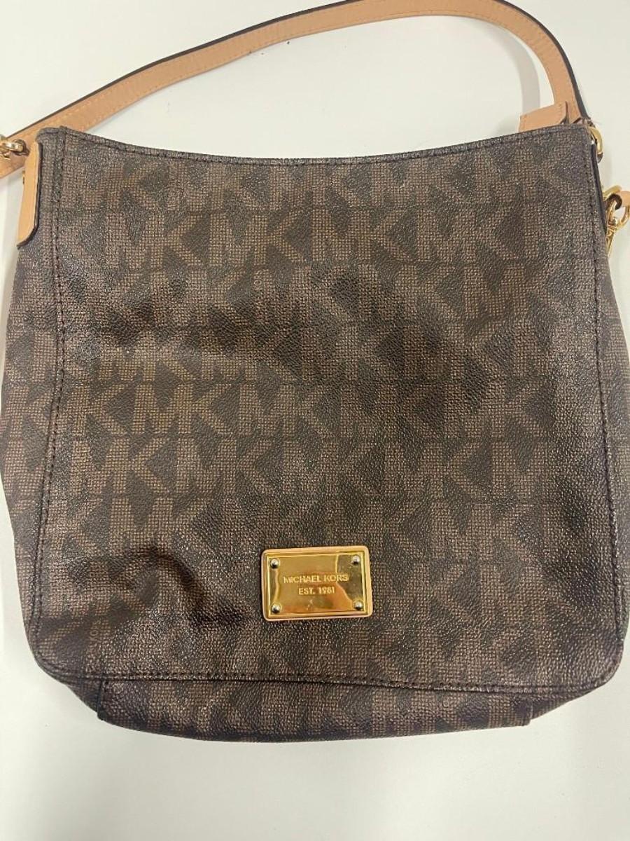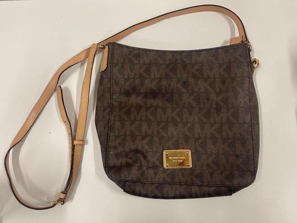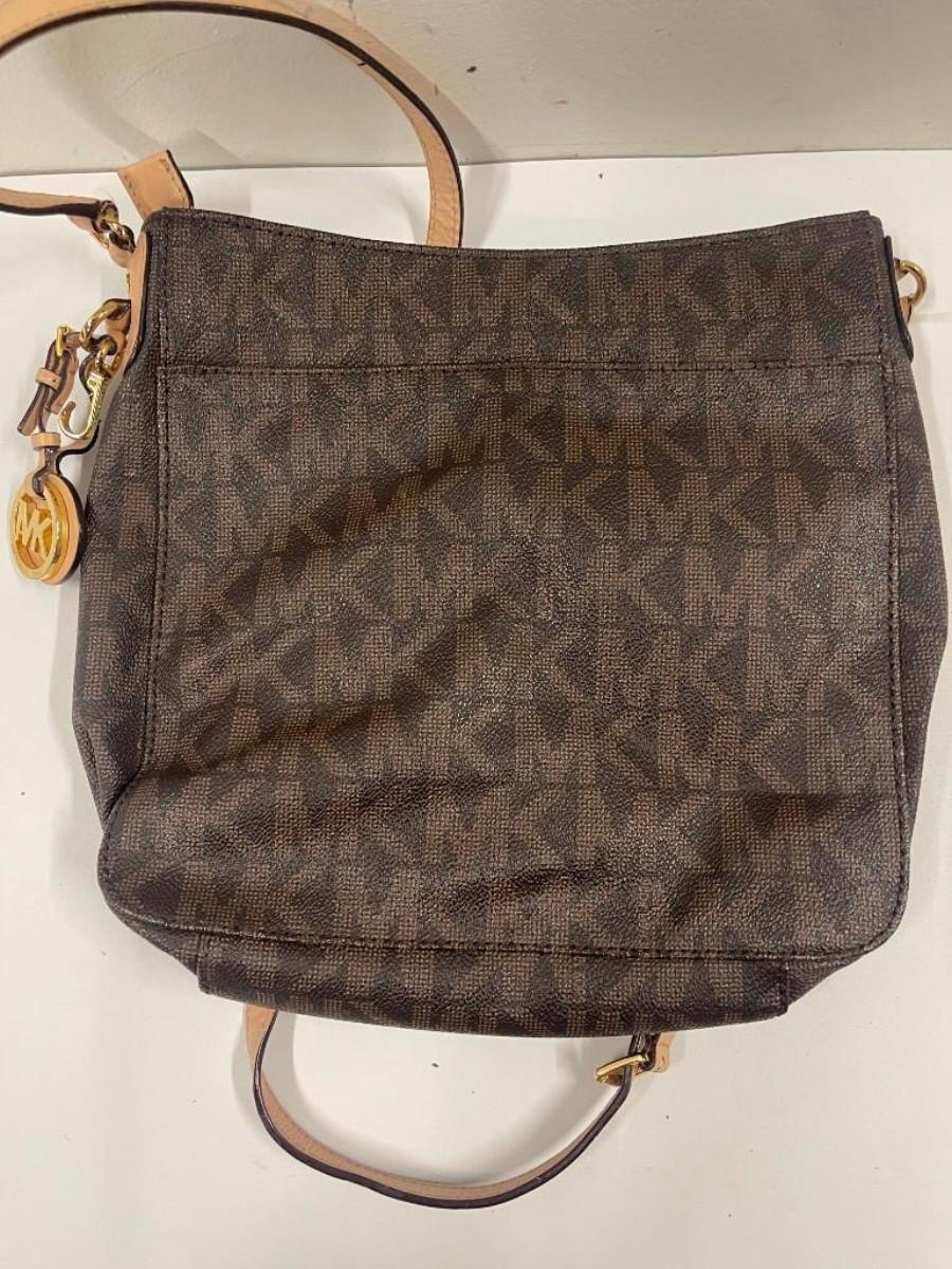 Michael Kors logo cross body handbag.<br /> Very good condition throughout. Approx 10&#34; x 11&#34;.