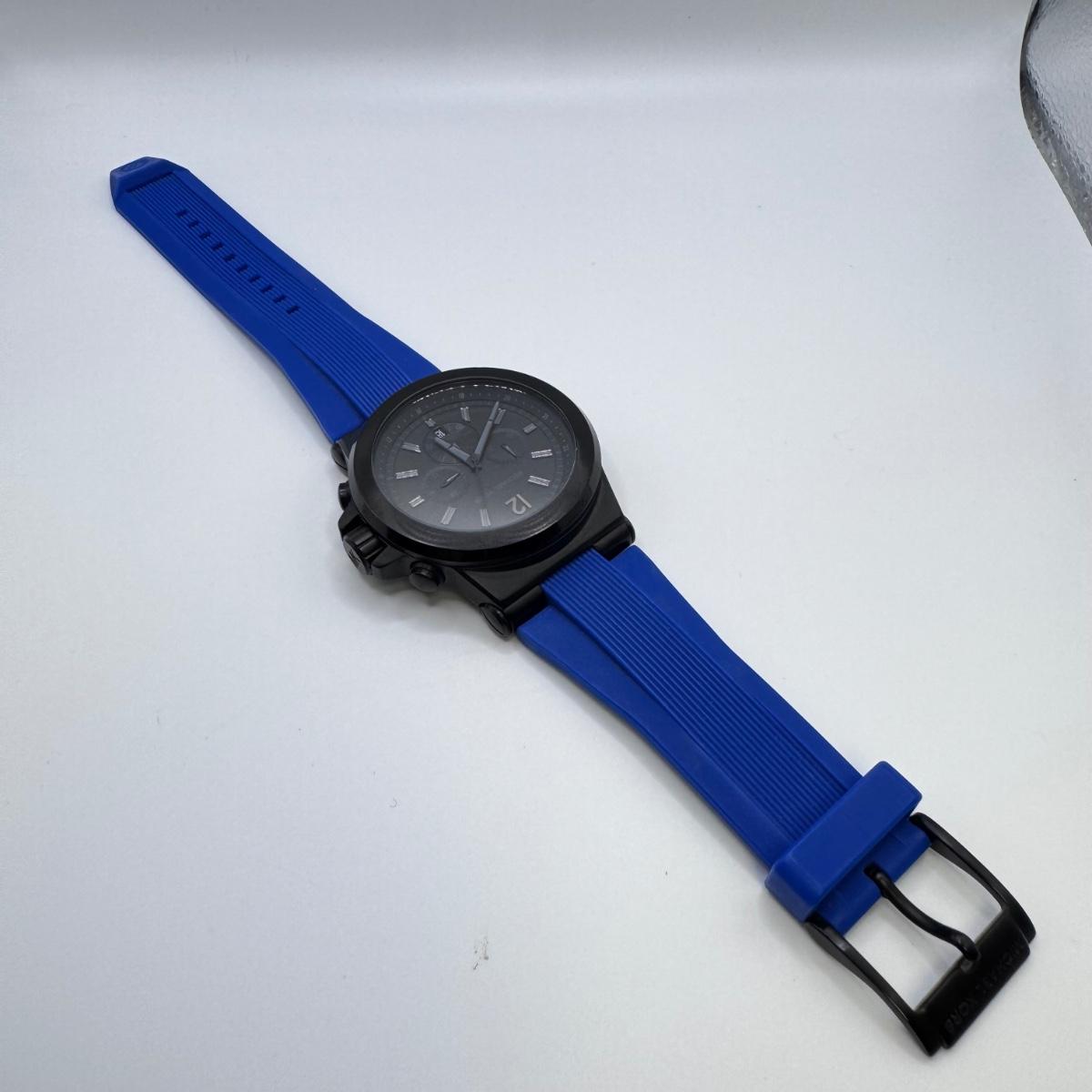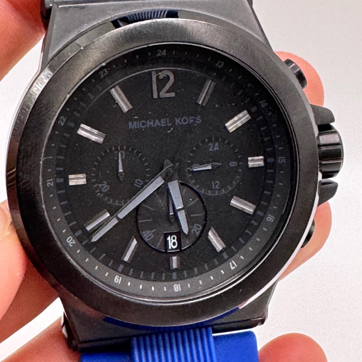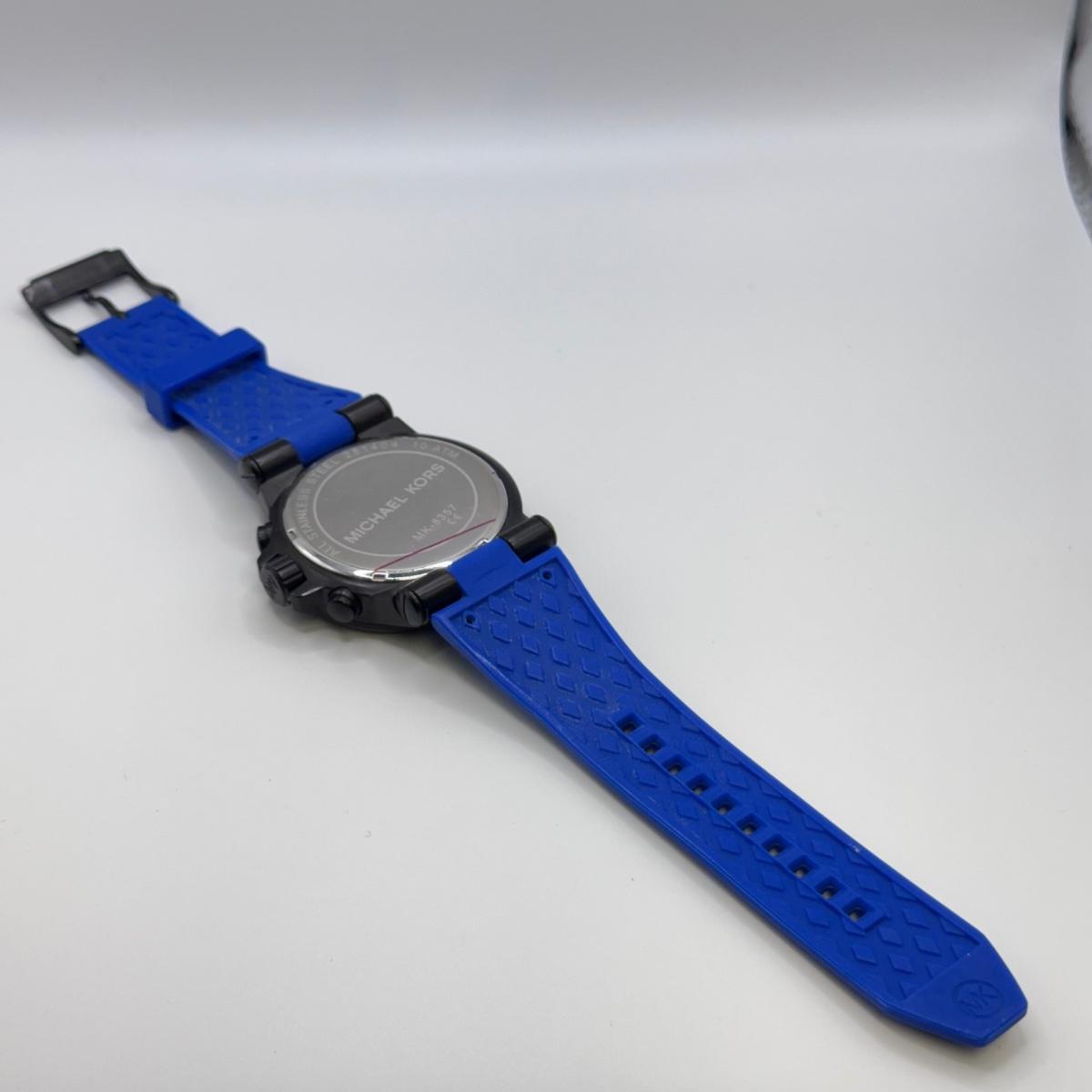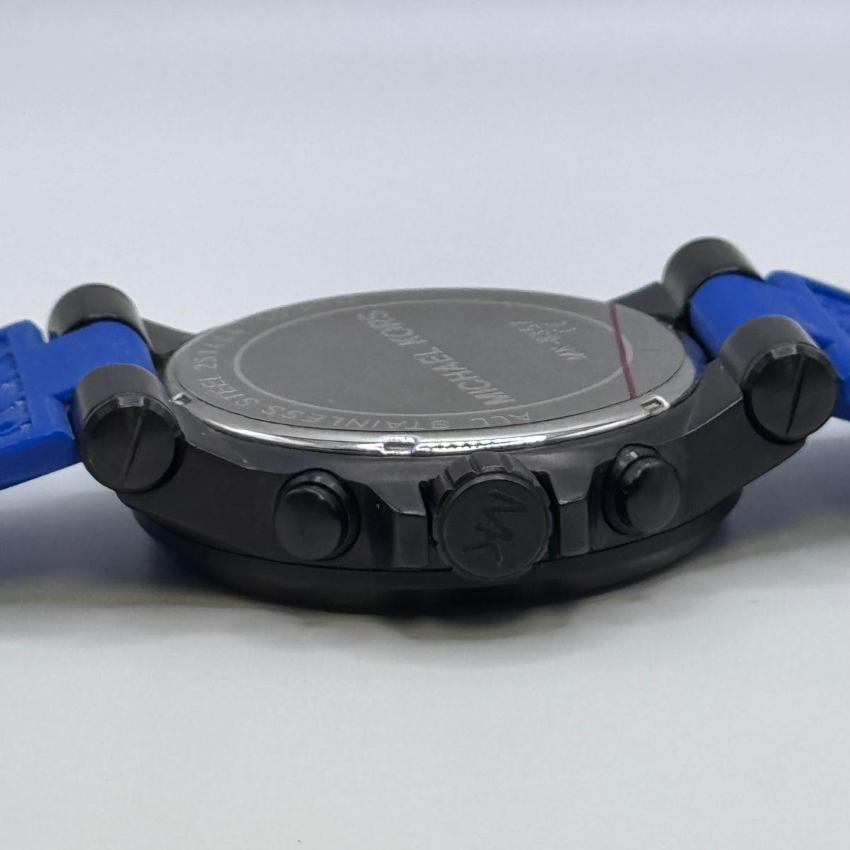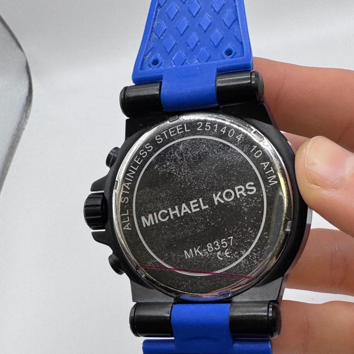 This lot includes one Michael Kors MK8357 watch made of stainless steel and rubber. The watch is in a pretty chronograph blue and measures 10.5” long, watch is currently not running. Shipping available.