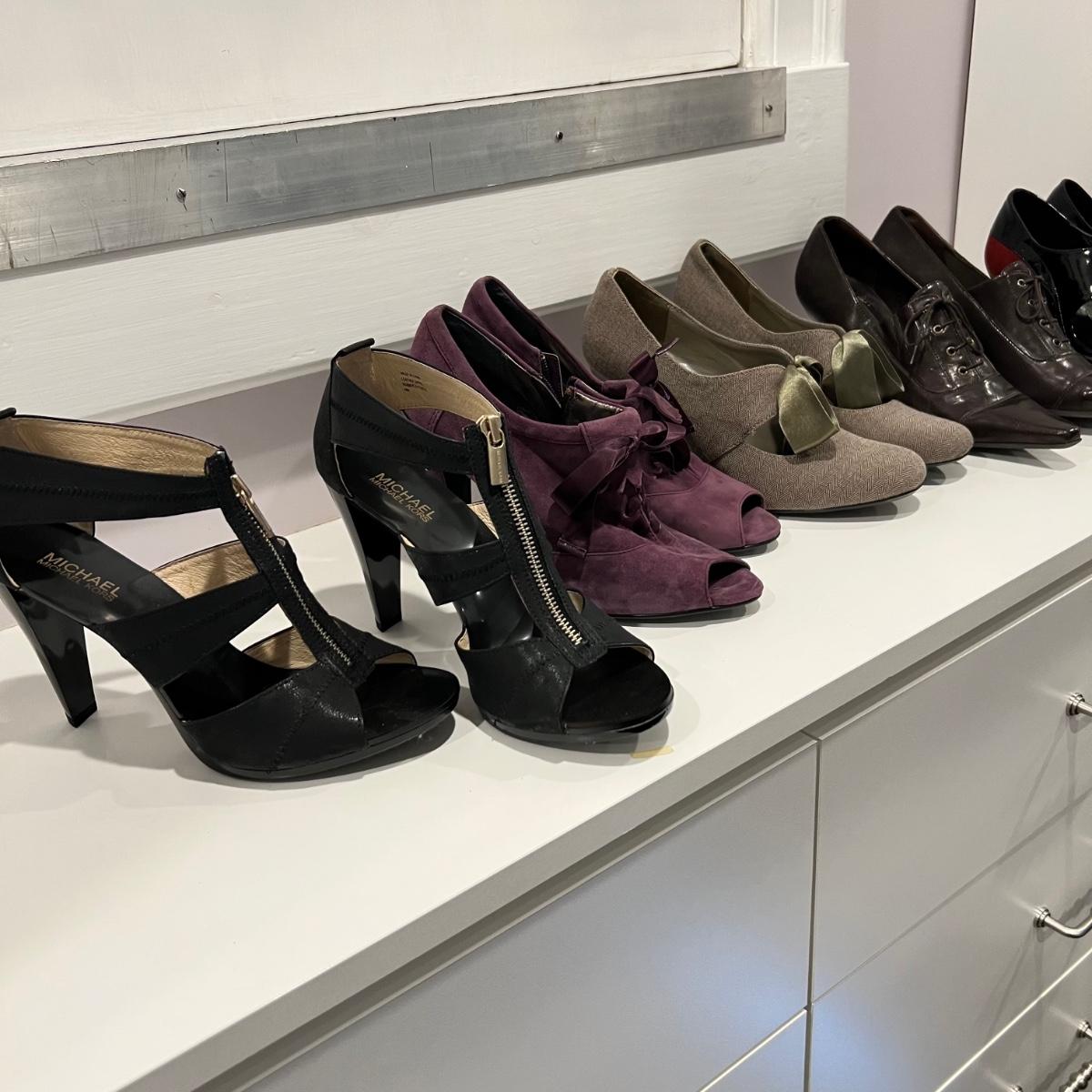 Five pairs of high heeled shoes for you here. As you will see from the photos, the Michael Kors and two other pairs of shoes have been lightly worn, possibly even new and the other two pairs are in great condition. Sizes are 9.5 and 10.