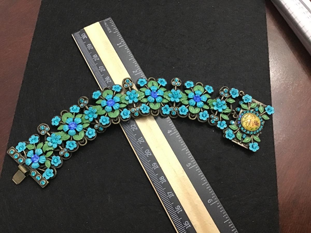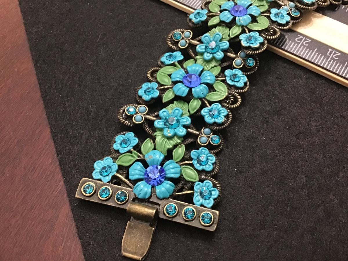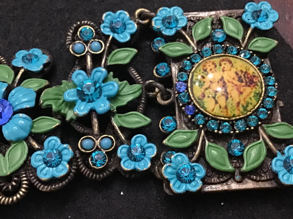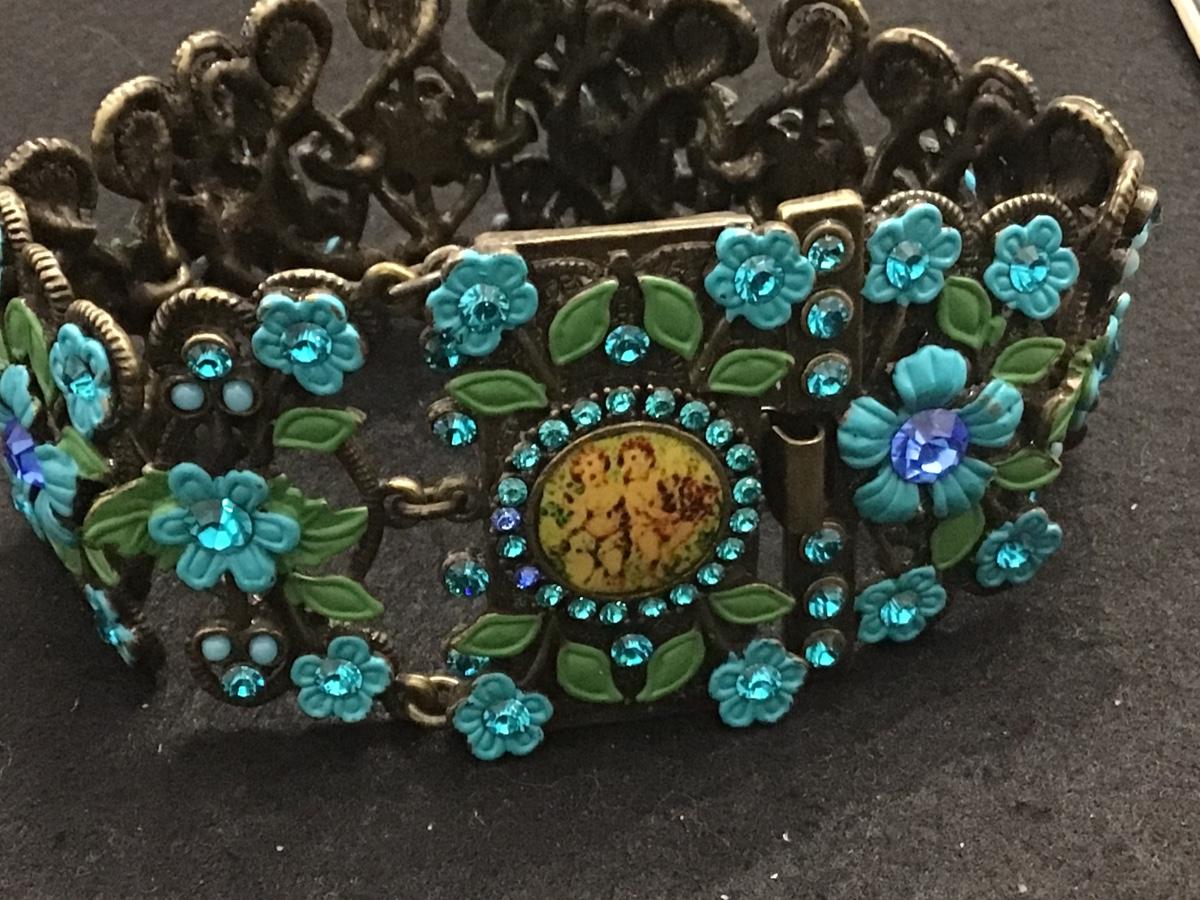 Michael Morrison MX Green Blue Enamel Cherub Rhinestone Bracelet
