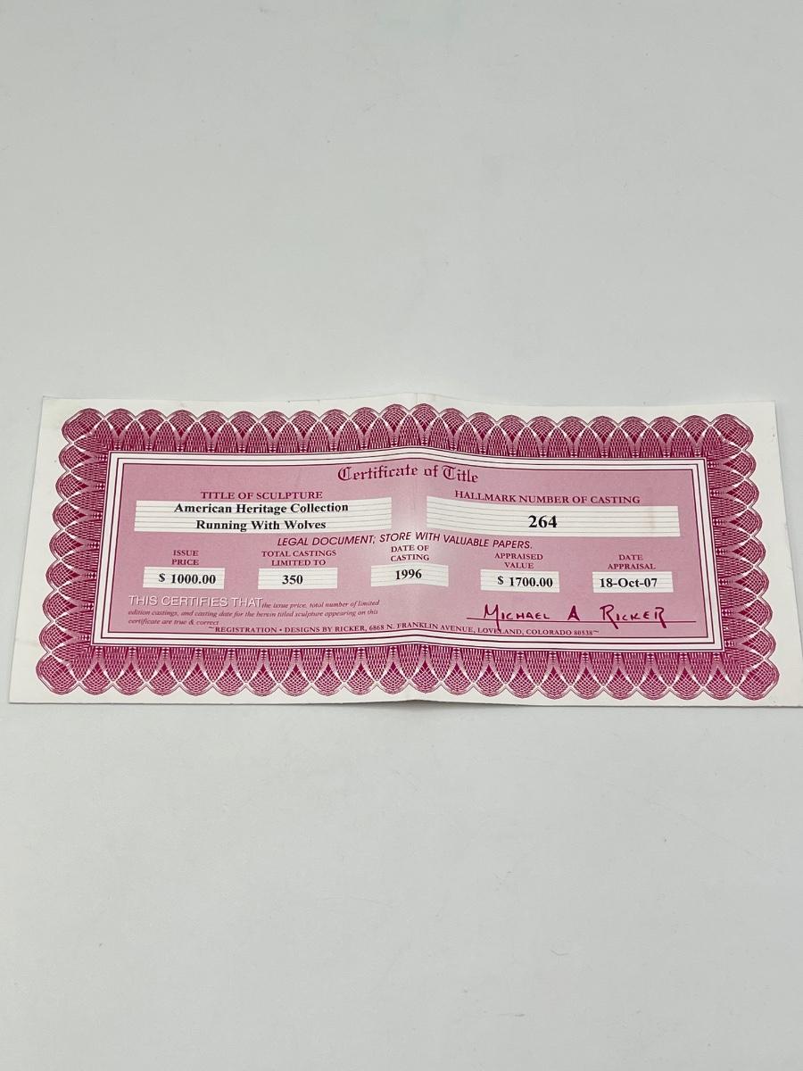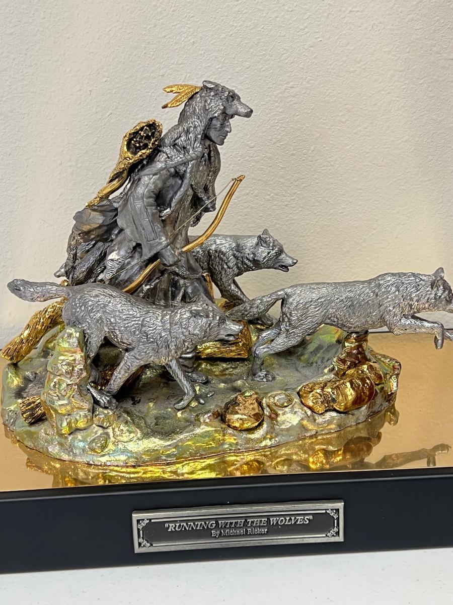MICHAEL RICKER ~ Limited Edition ~ “Running With Wolves” Pewter Sculpture ~ New In Box