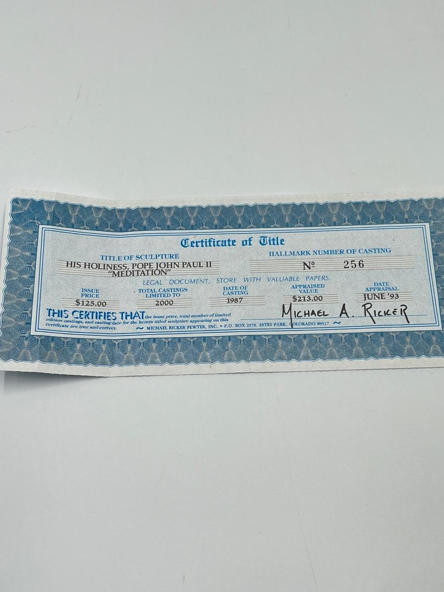 His Holiness ~ pewter sculpture ~ has his cert ~ 6” H