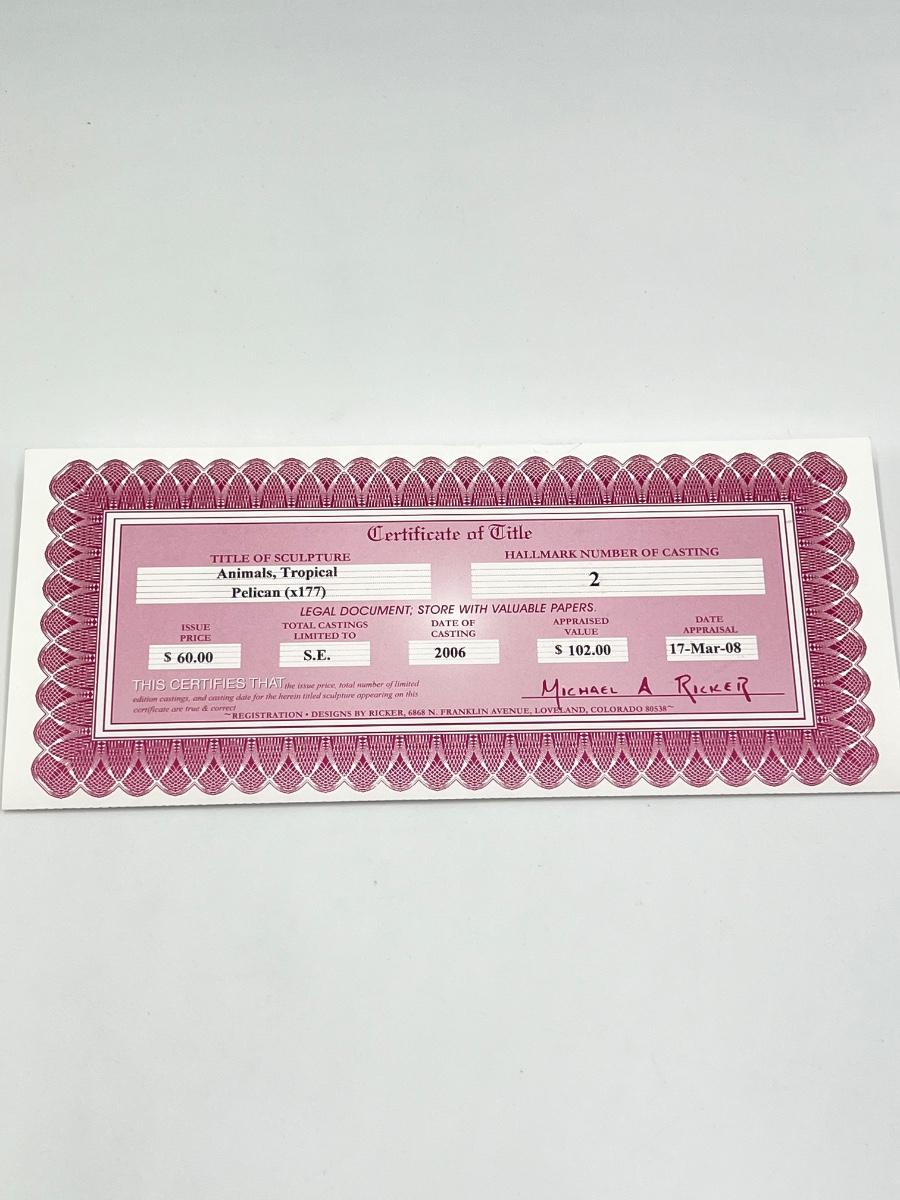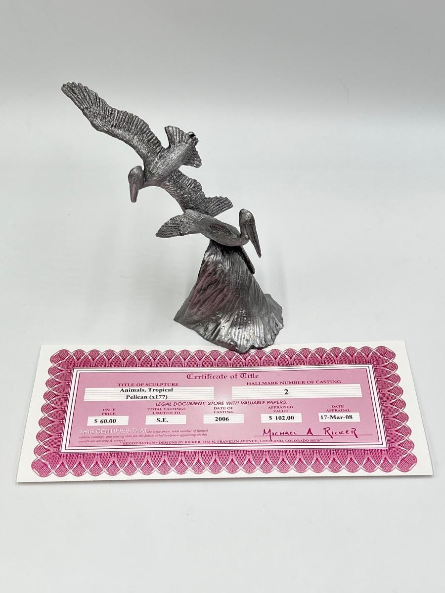 MICHAEL RICKER ~ Tropical Animals ~ Pewter Pelican Sculpture