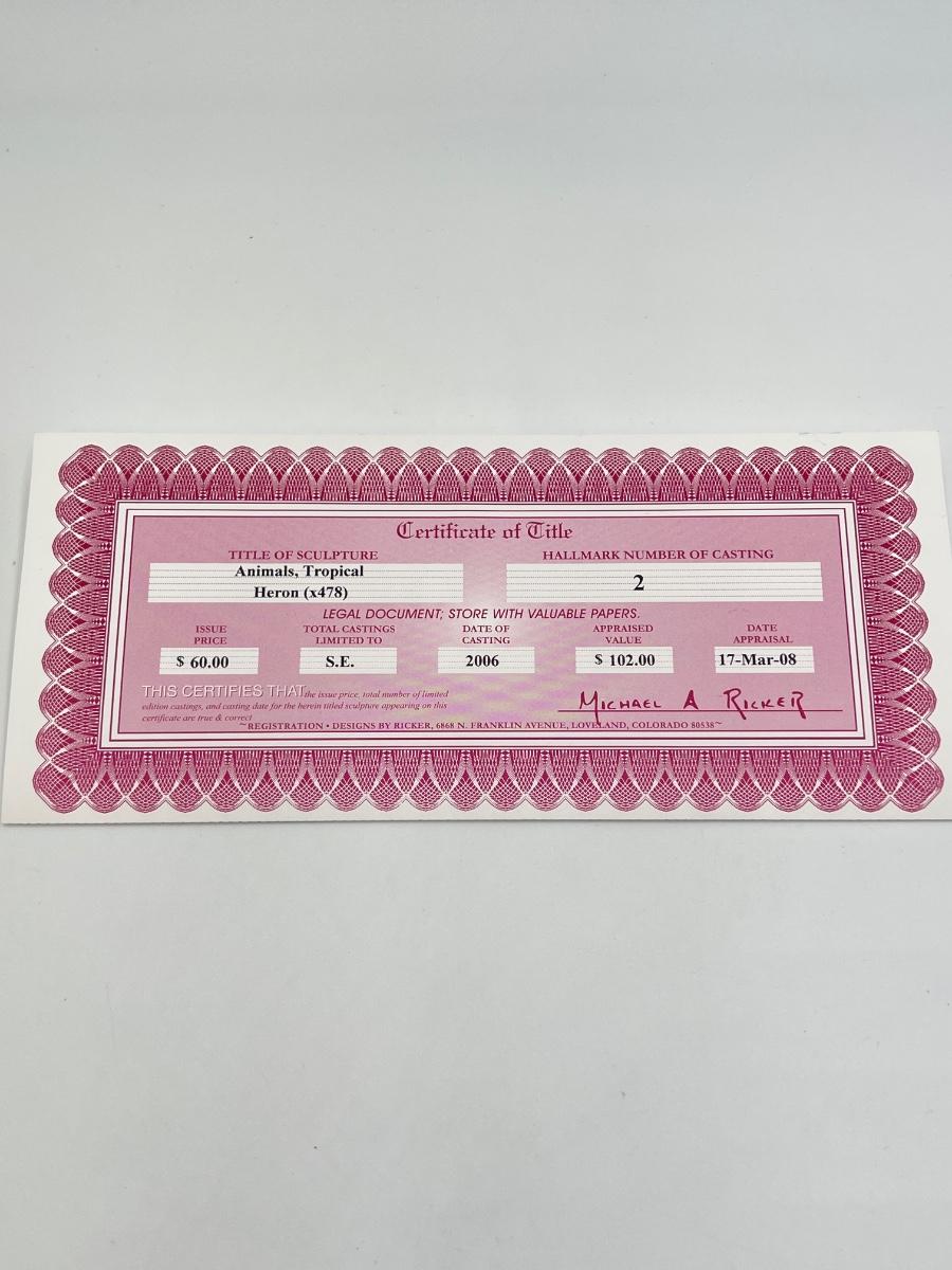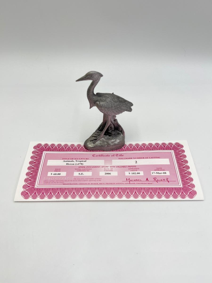 MICHAEL RICKER ~ Tropical Animals ~ Pewter Heron Sculpture