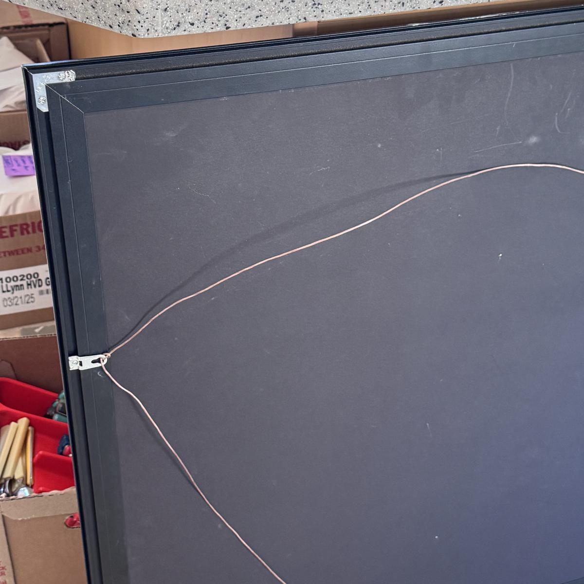 This lot includes one large mixed media painting by Michelle Tsosie Sisneros. The art displays several jesters in shades of black, blue, red, and yellow. The art is protected with glass, double matting, and a metal frame. It appears to be an original and is signed in the bottom right with ink. The frame measures 42” x 35”H. There are a few white paint marks on the top of the frame - see the last picture. Shipping available. Shipping can be costly. We suggest contacting our preferred local shipping provider, Postage Express, with dimensions and getting an estimate before bidding: (828) 255-9250 or shipping@postageexpressnc.com.