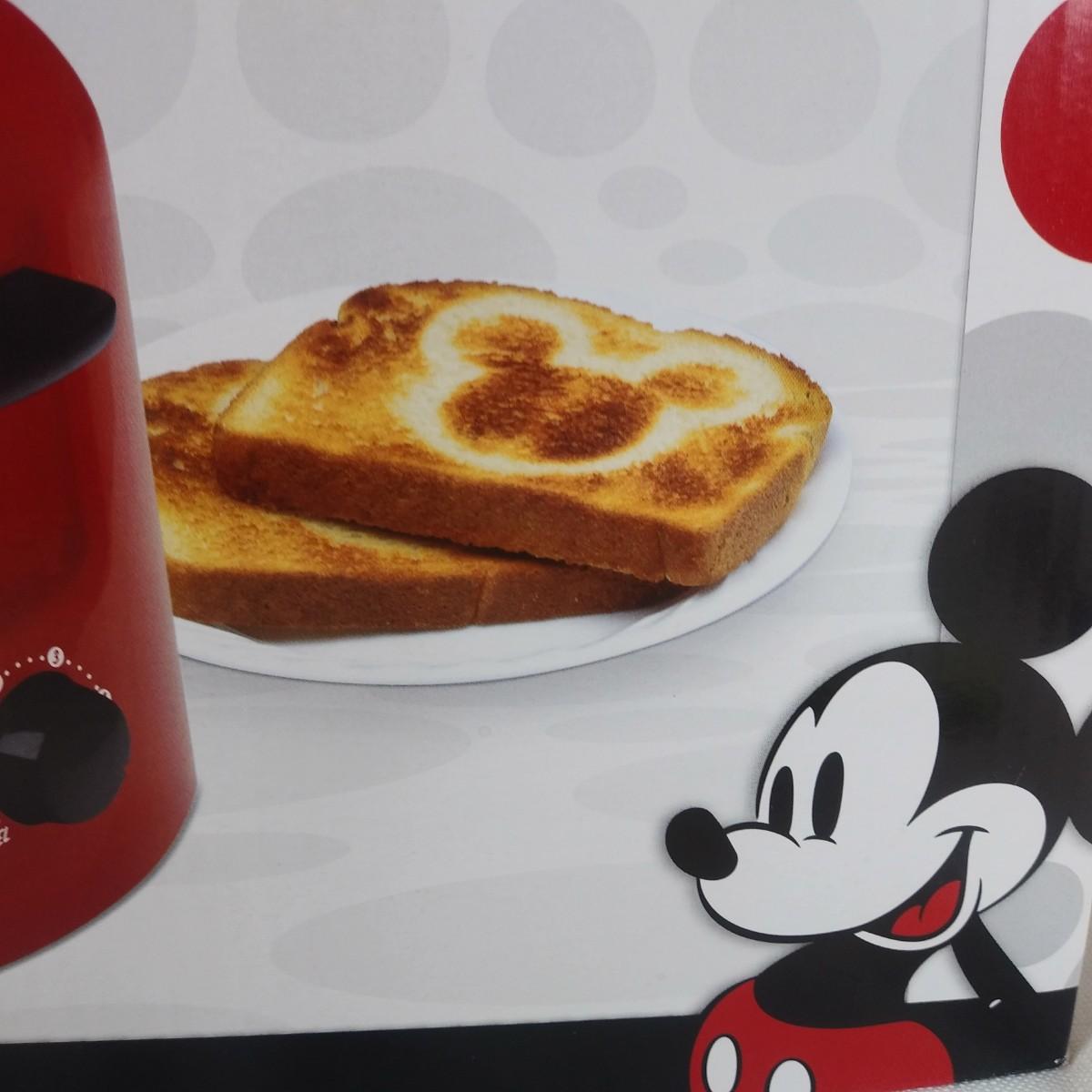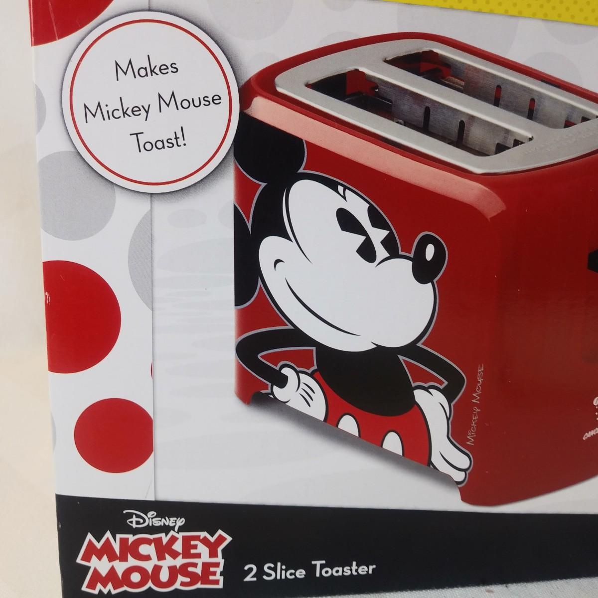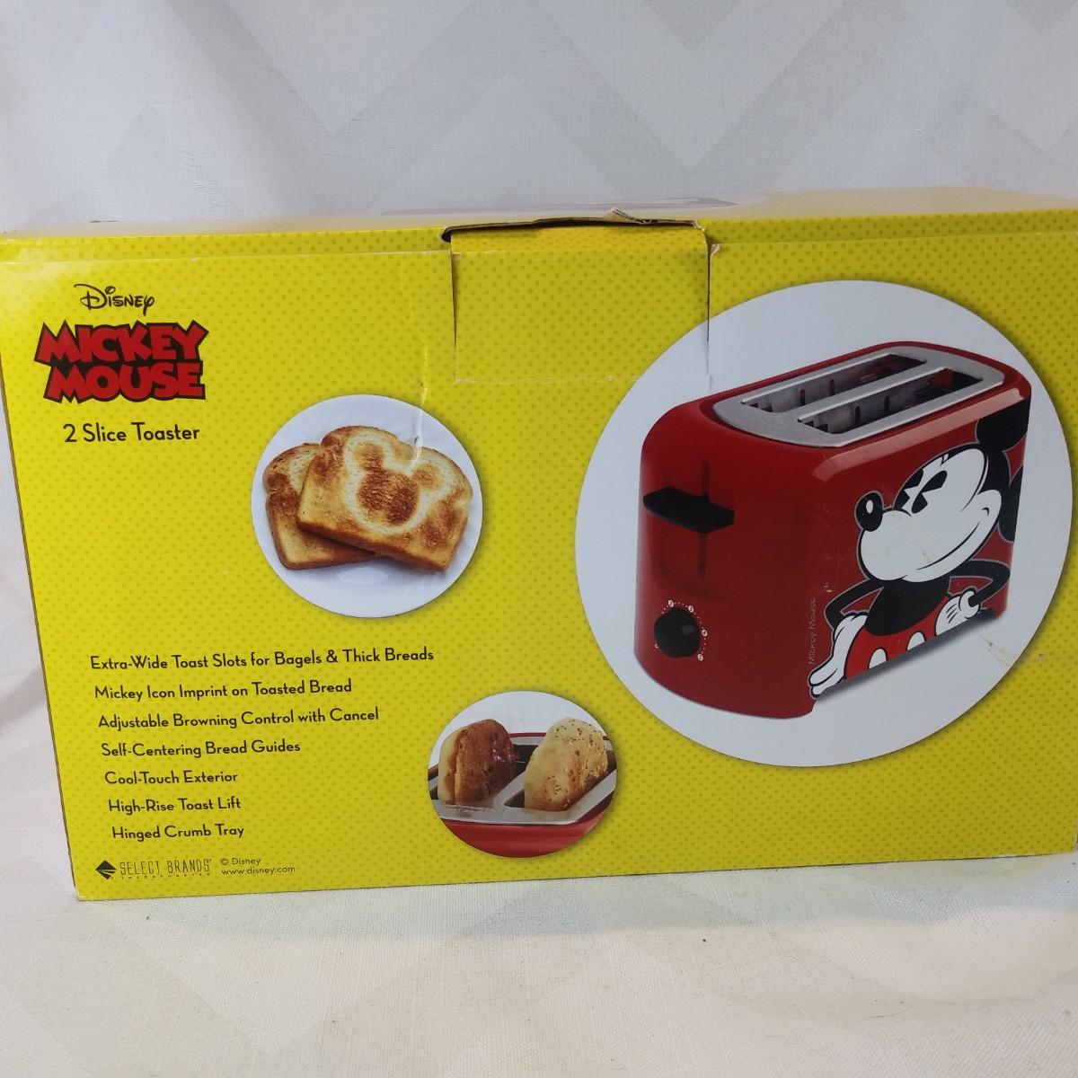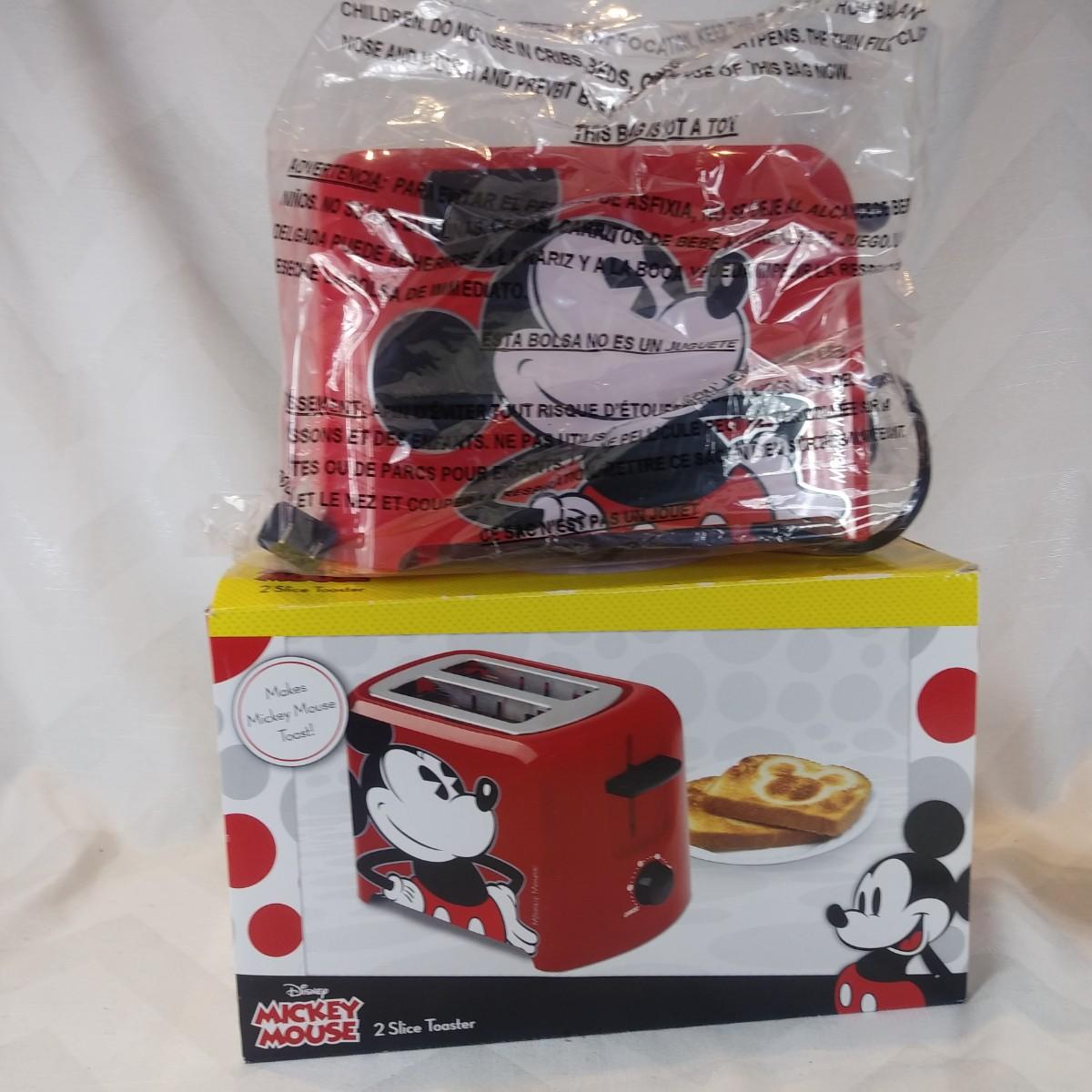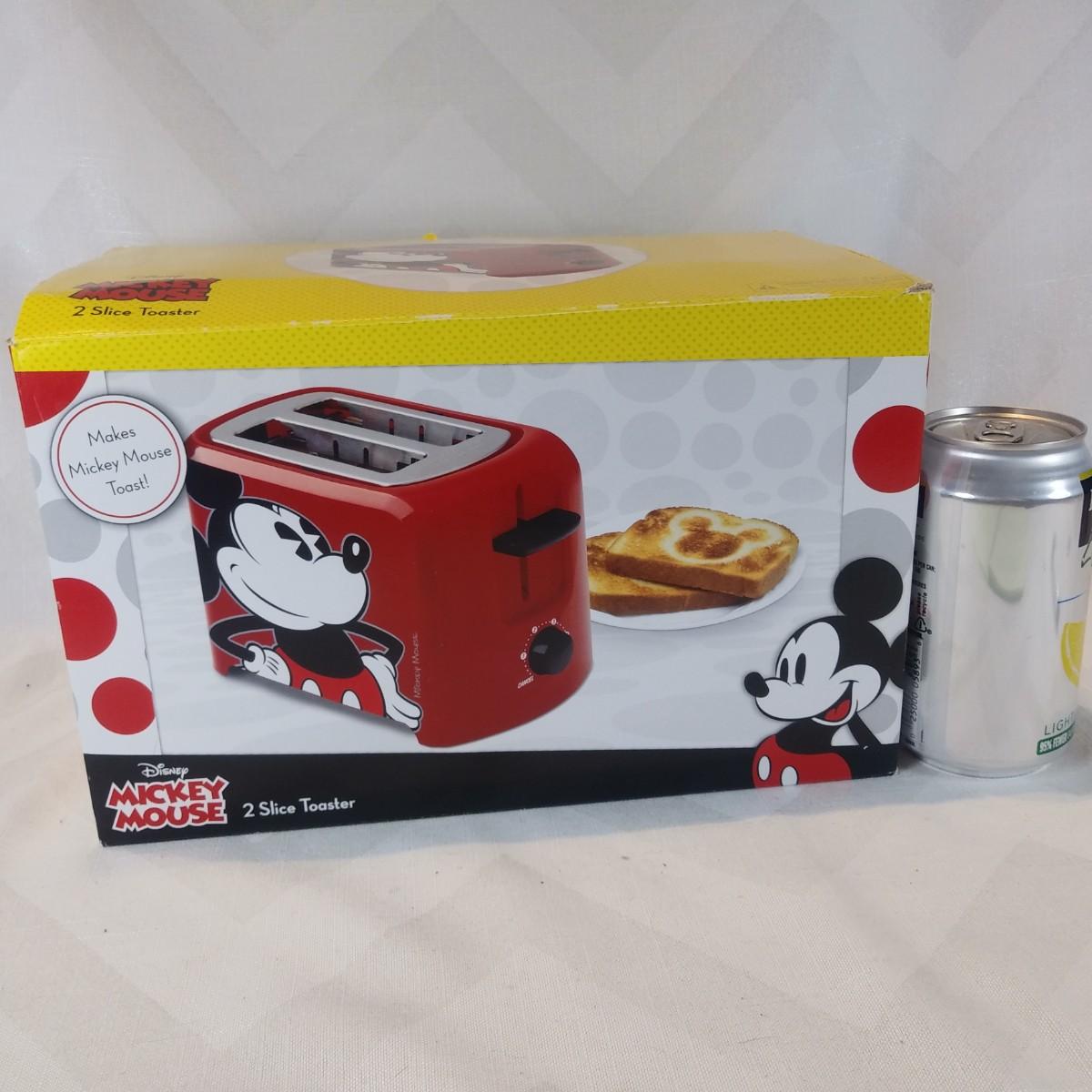 This auction lot is for a Mickey 2 Slice Toaster. It is new in its original box, and is a full-sized 2 slice toaster. Very cool - toasts the Mickey Mouse image on the bread.