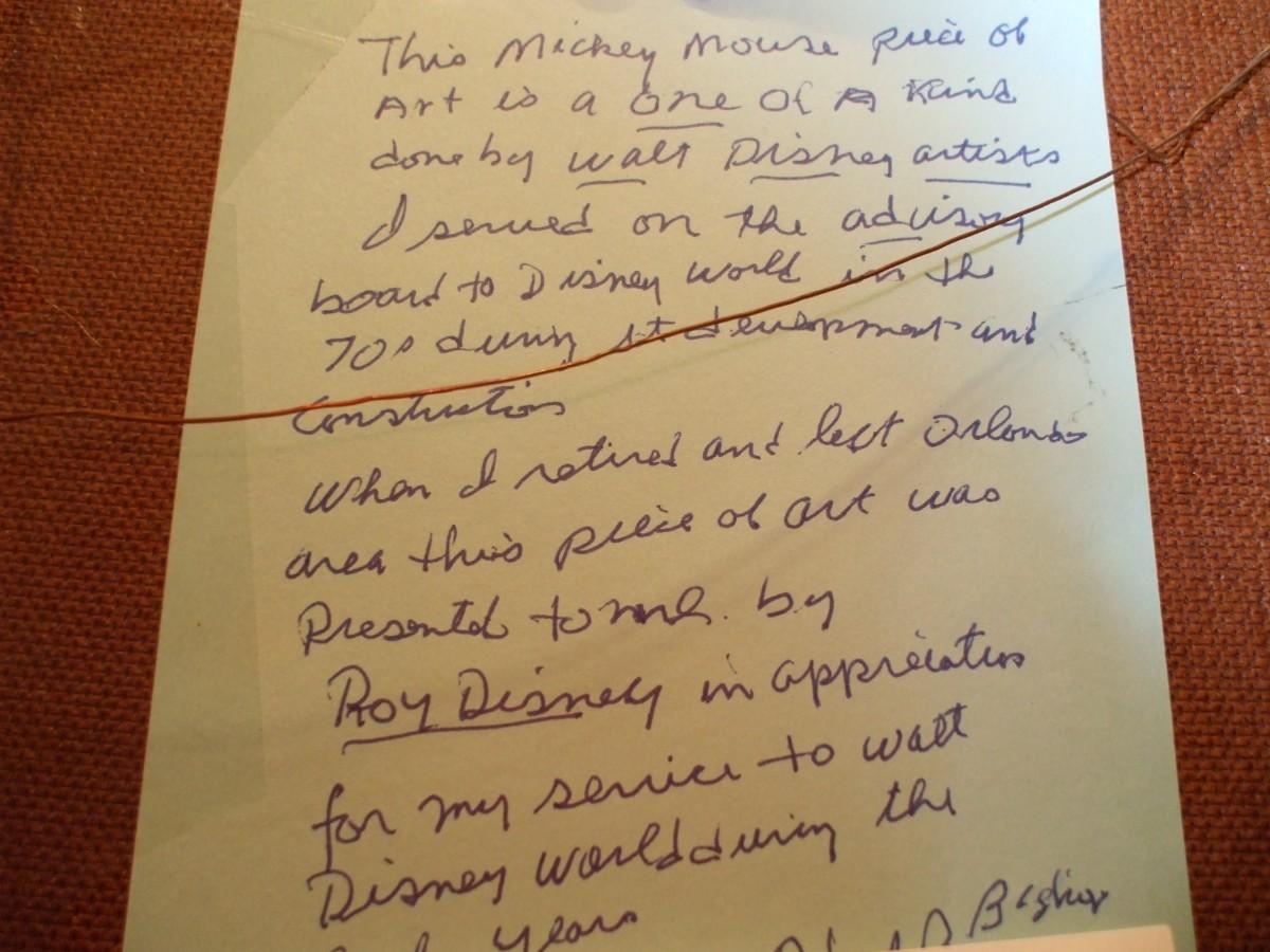 This is a one of a kind-Done by a Walt Disney Artist in the 1970"2-Presented by Roy Disney for service.