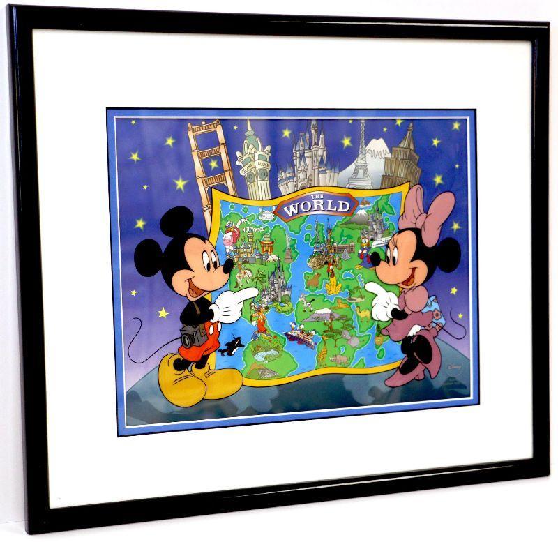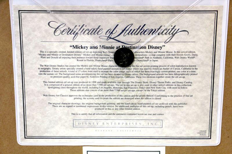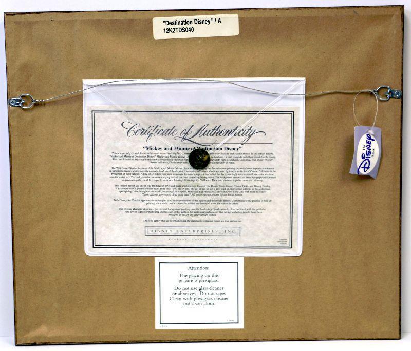 Mickey and Minnie at Destination Disney Limited Edition Original Sericel Art in Frame, Mint New condition, Image 12.5" x 10", framed 18.5" x 16" - Collector's Item!