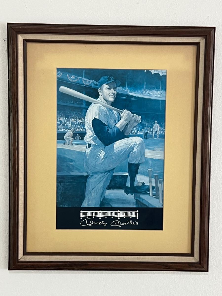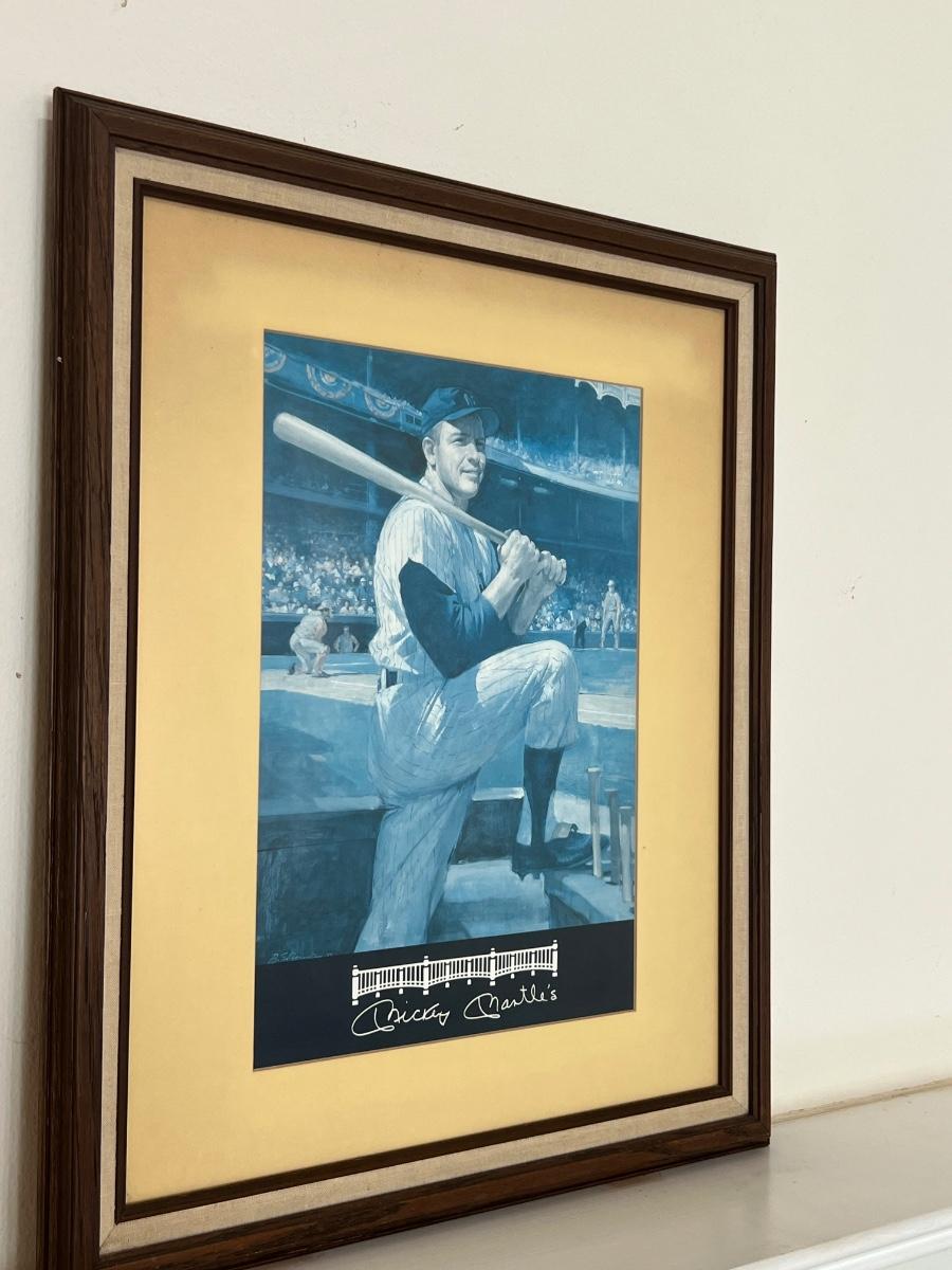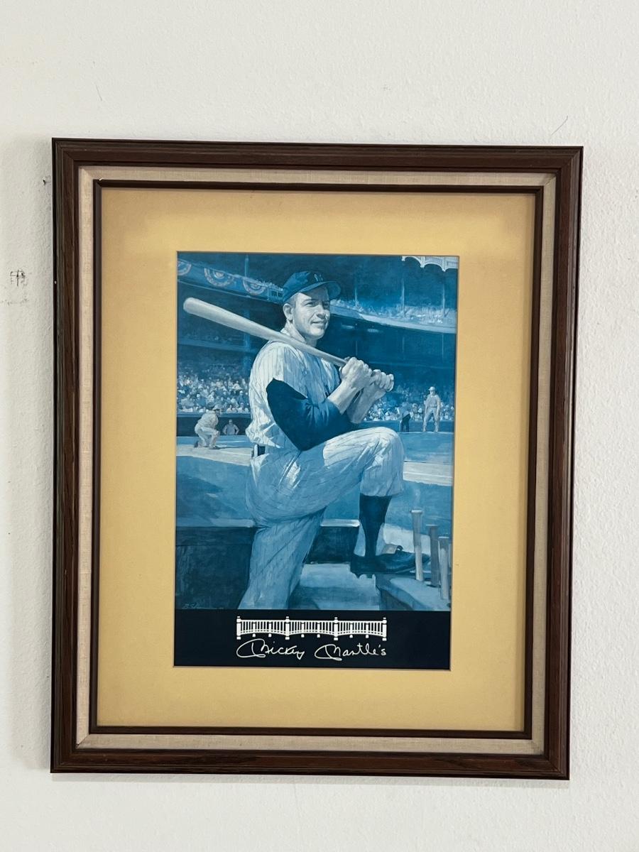 Mickey Mantle NO. 7 Yankees framed art. Perfect for the baseball collection or MANCAVE. Measures 19x23.