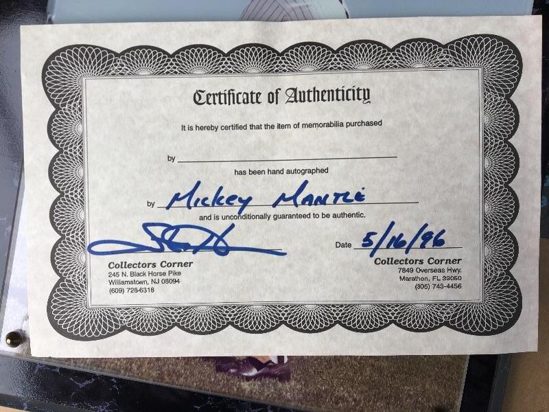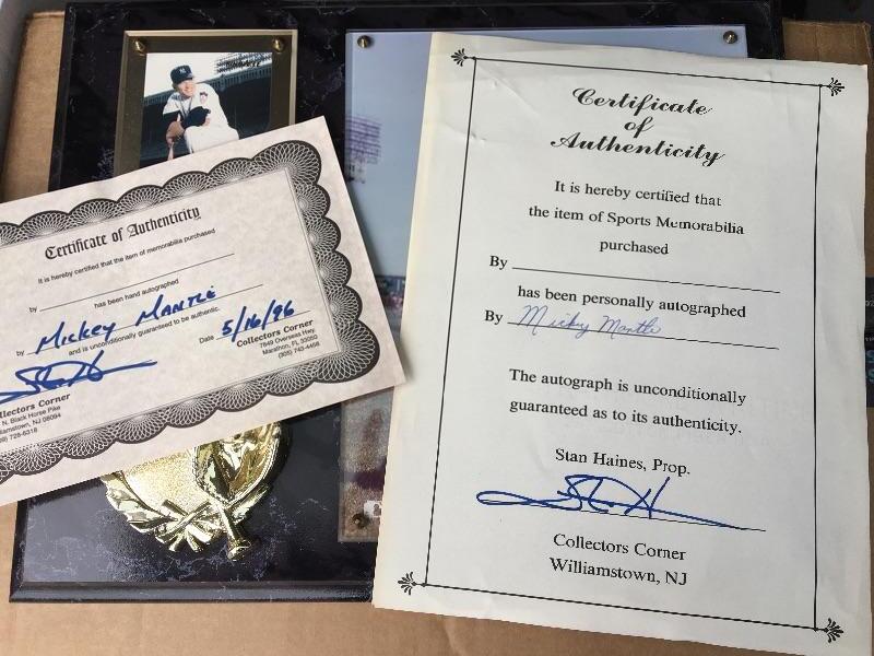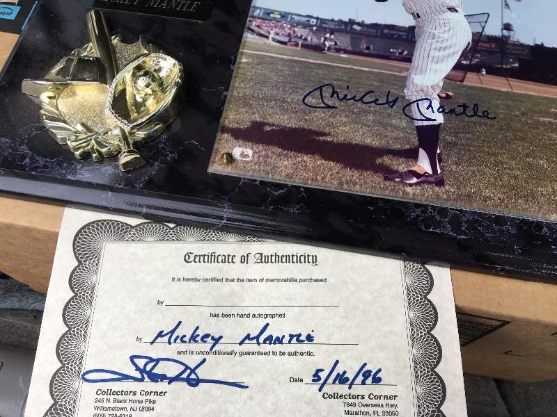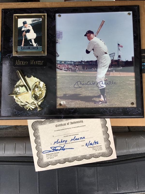 MICKEY MANTLE Signed Vintage Photo, Plaque and Certificate of Authenticity