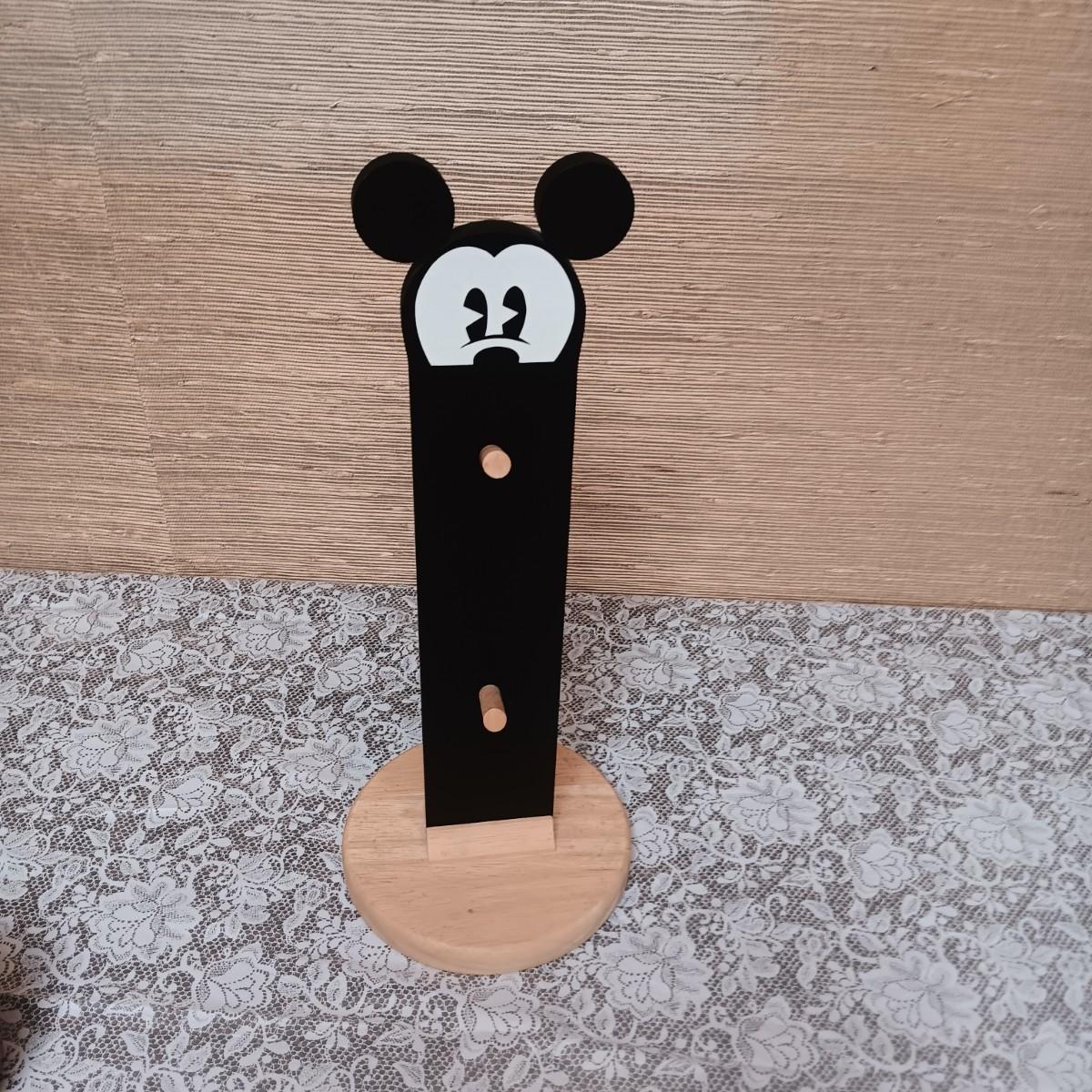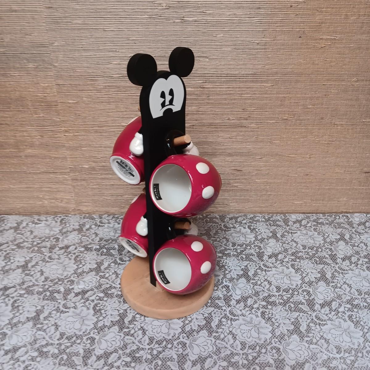 MICKEY MOUSE 4 MUGS AND A WOODEN PEGGED HOLDER
