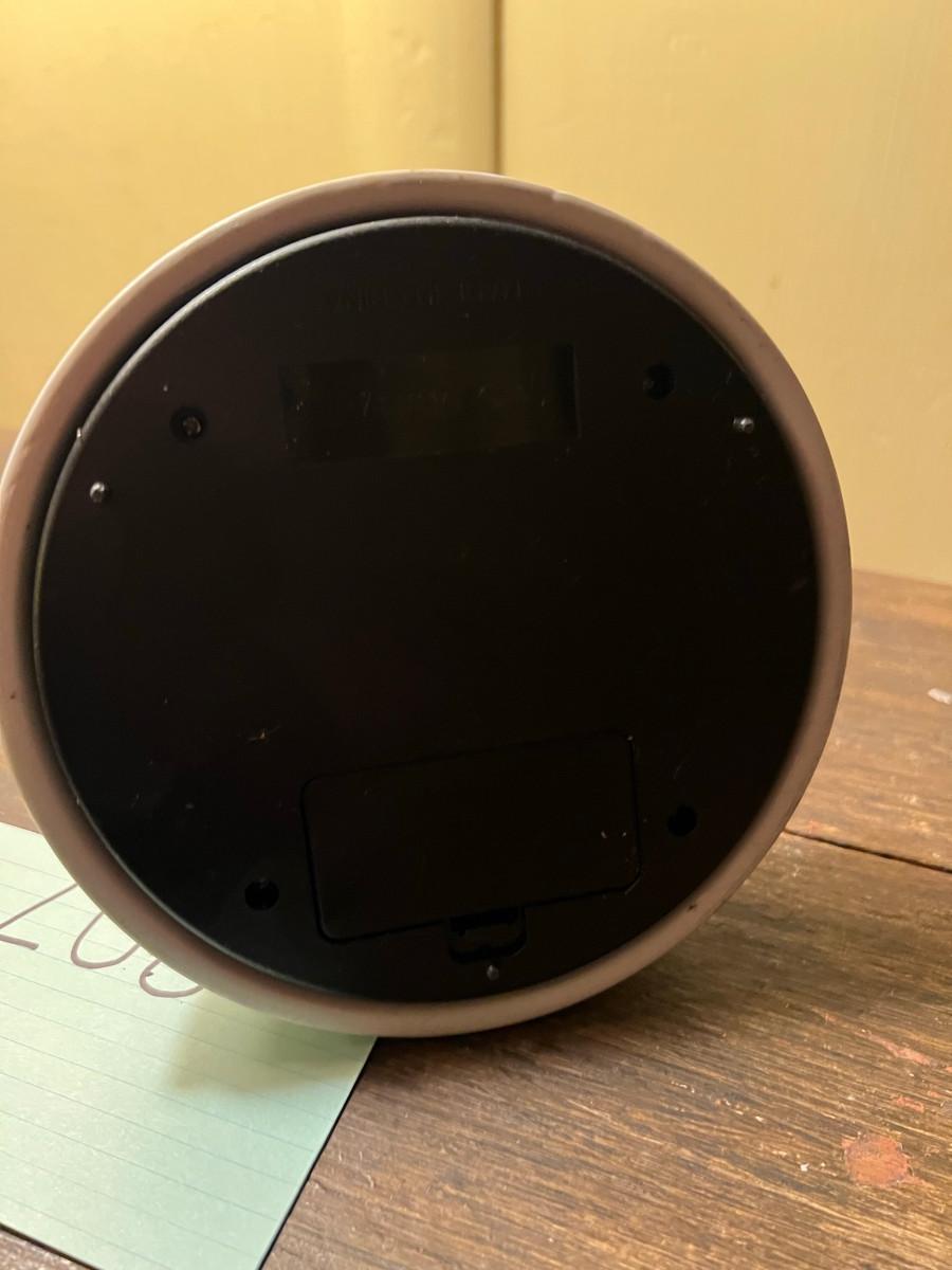 Battery operated, small chip on the bottom of the dome. 10" x 9.5" diam base.