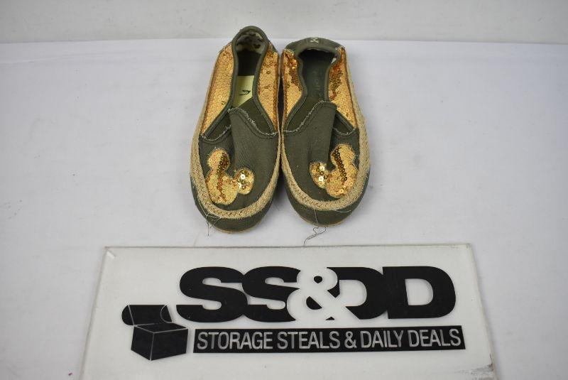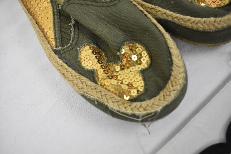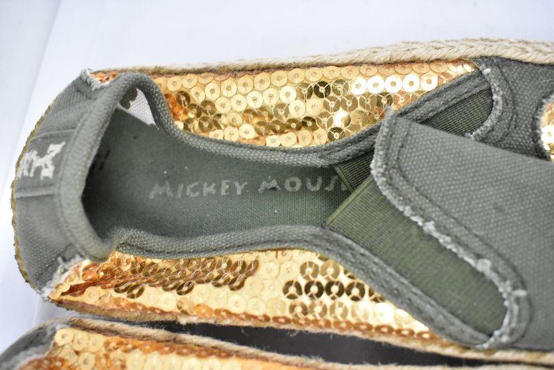 Mickey Mouse Shoes Size 6: Green Canvas & Gold Sequins