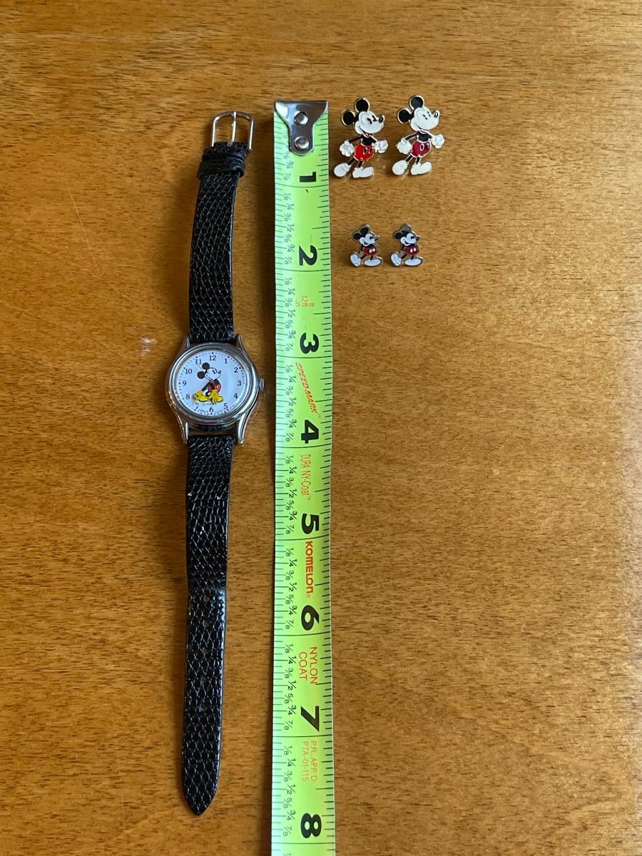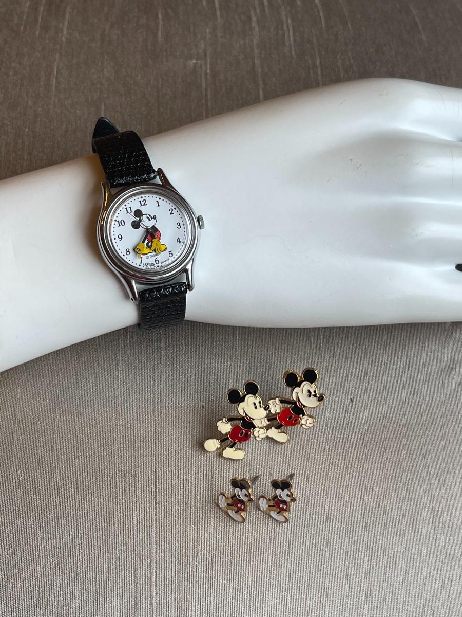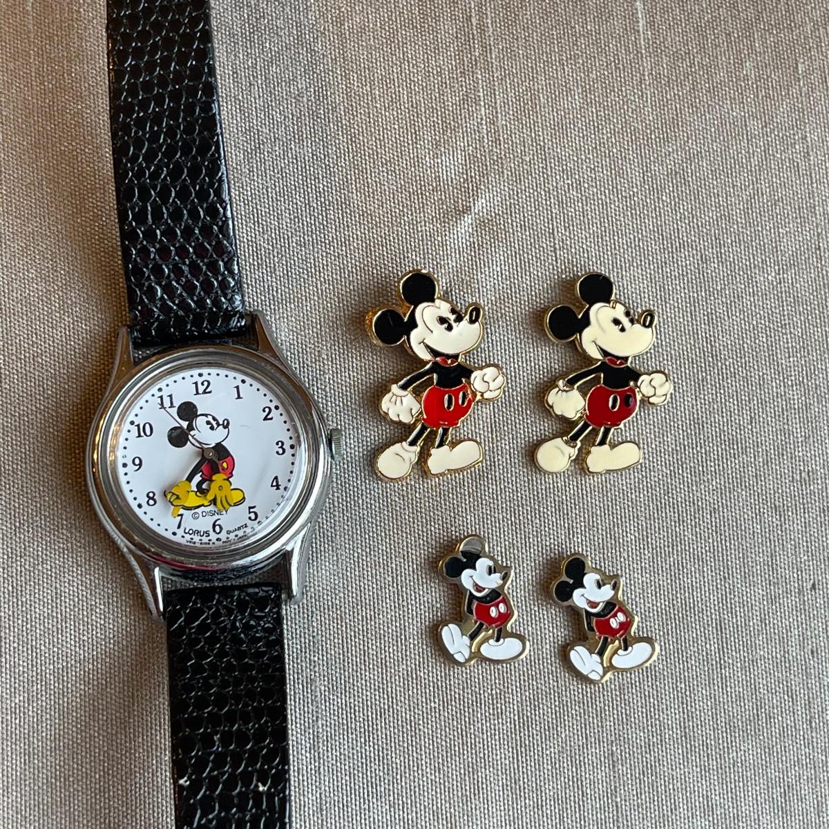 Mickey Mouse Watch and Enameled Earrings (2 Pair)