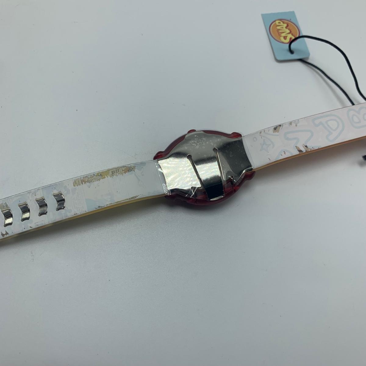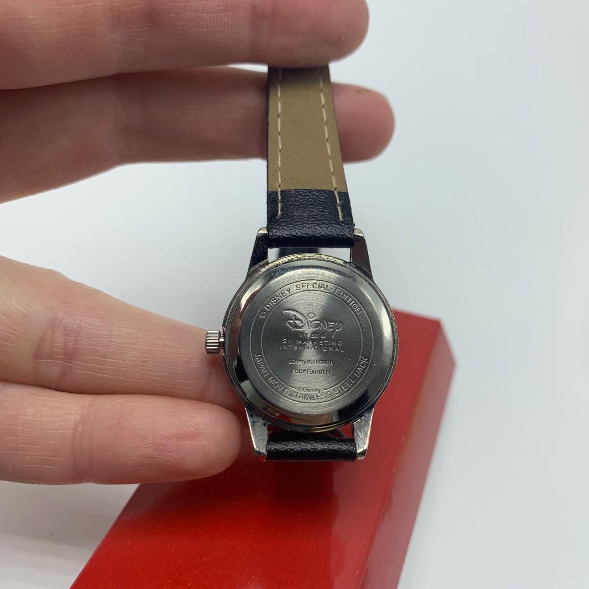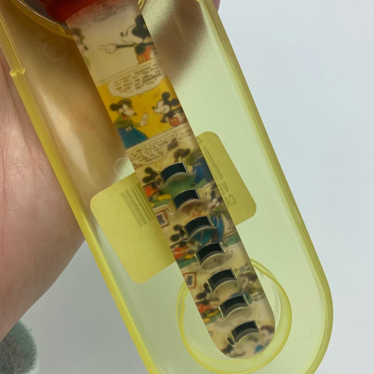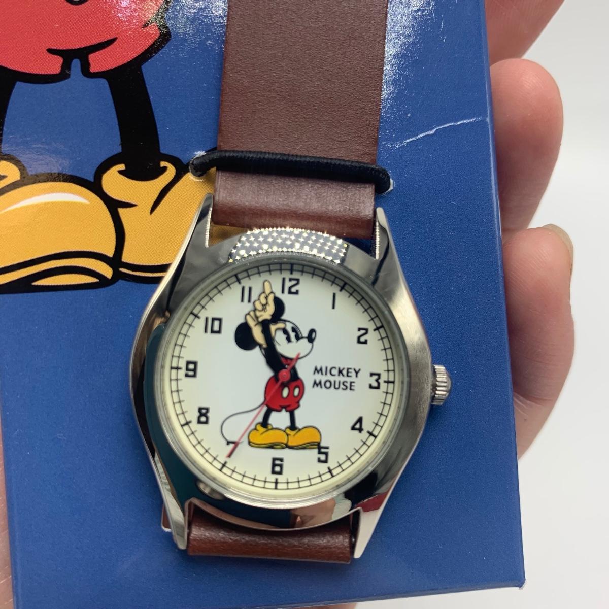 Four Mickey Mouse watches plus two pendants, a charm, and a small plastic Mickey Mouse figurine. Three of the watches appear to be unworn. The pink one has been used and needs cleaned. None of the watches are currently functioning and likely need their batteries replaced.