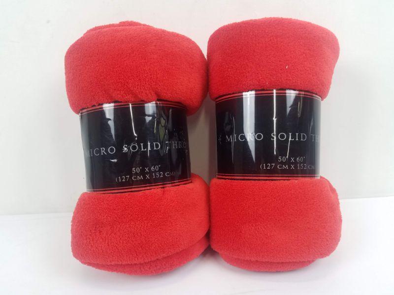 Micro Fleece Solid Throws, Red, Qty 2, 50" x 60" Each - New