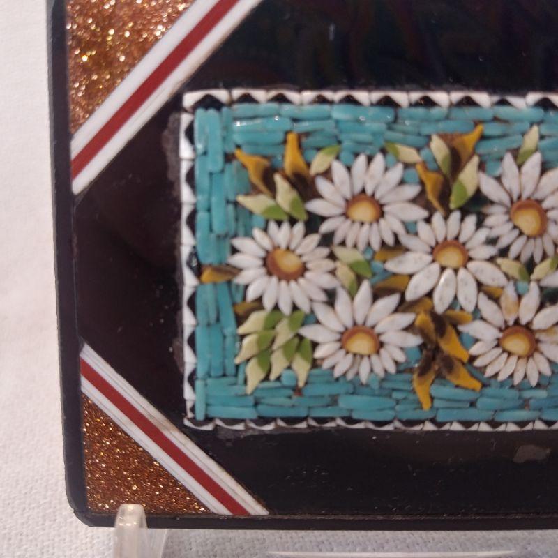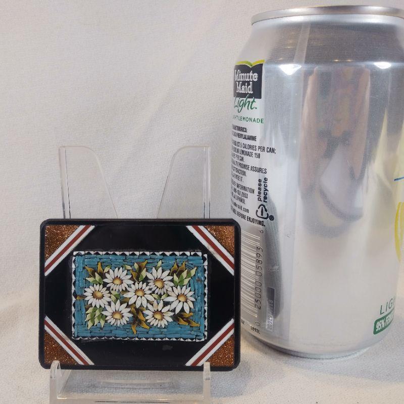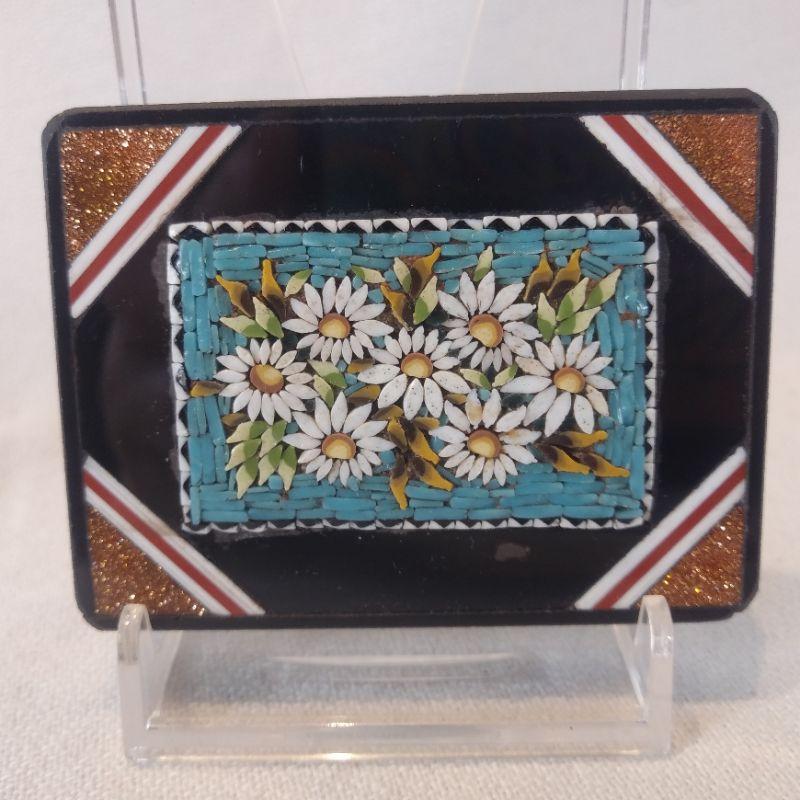MIcro-Mosaic Paperweight. This is amazing - such tiny pieces all put together. An art from Roman times it appears that this beautiful item was a souvenir purchased in the 1920's while touring Italy. Size measures 2 5/8-inches X 2-inches X 3/8-inch thick. No missing pieces, very good condition. Starting Bid/Reserve is $20.