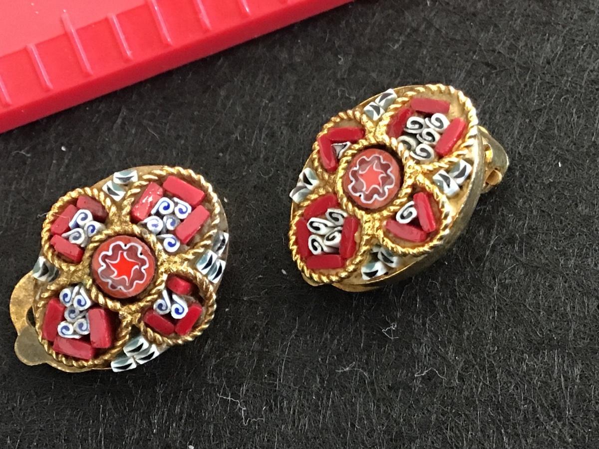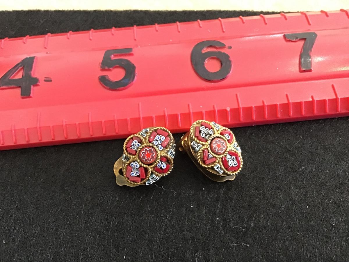 Micro Mosaic Vintage Clip on Earrings