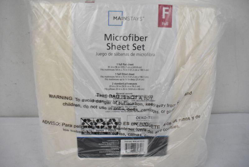 Microfiber Full Sheet Set, Fresh Ivory, Mainstays - New
