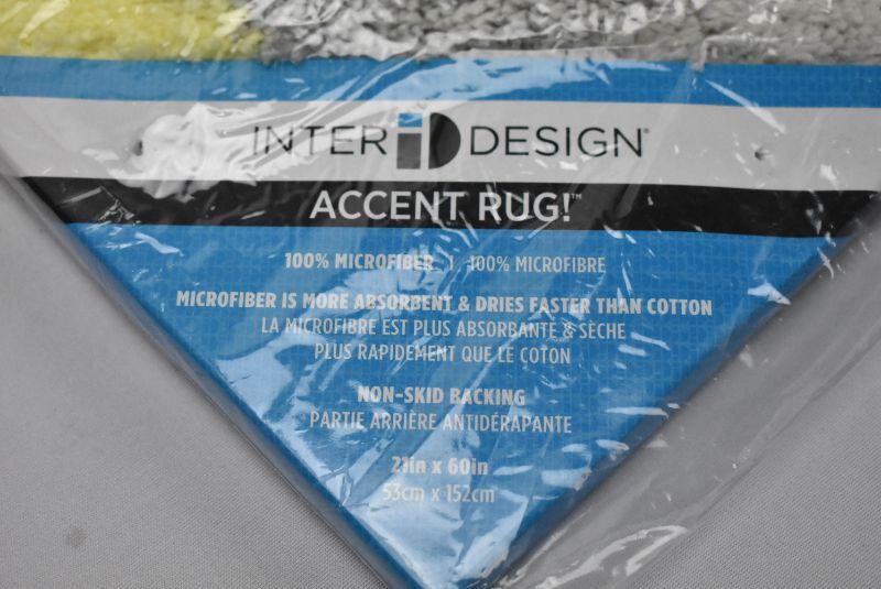 InterDesign Microfiber Stripes Long Bathroom Rug, 60"x 21" Yellow/White/Gray - New, $36 Retail