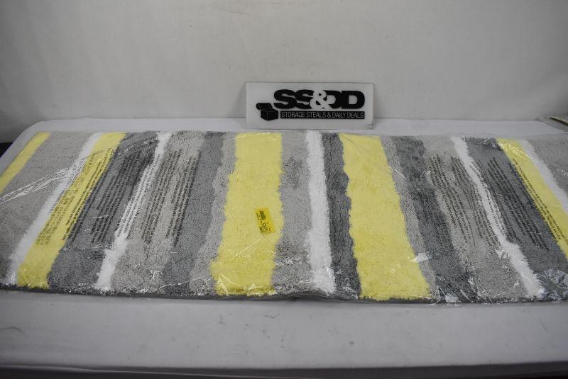 Microfiber Long Bathroom Rug, 60"x 21" Yellow/White/Gray - New, $36 Retail