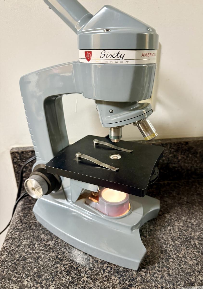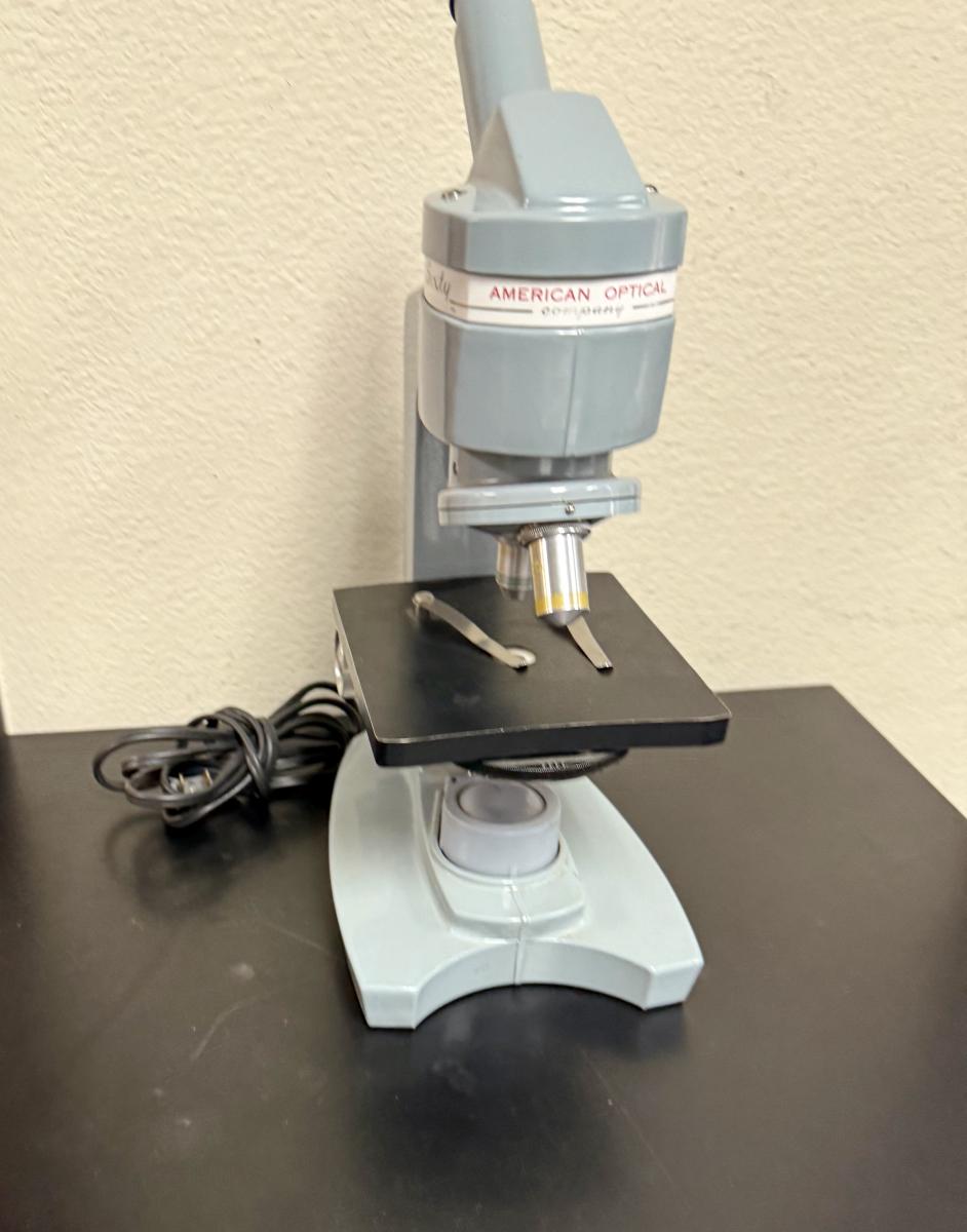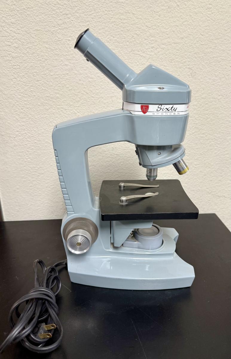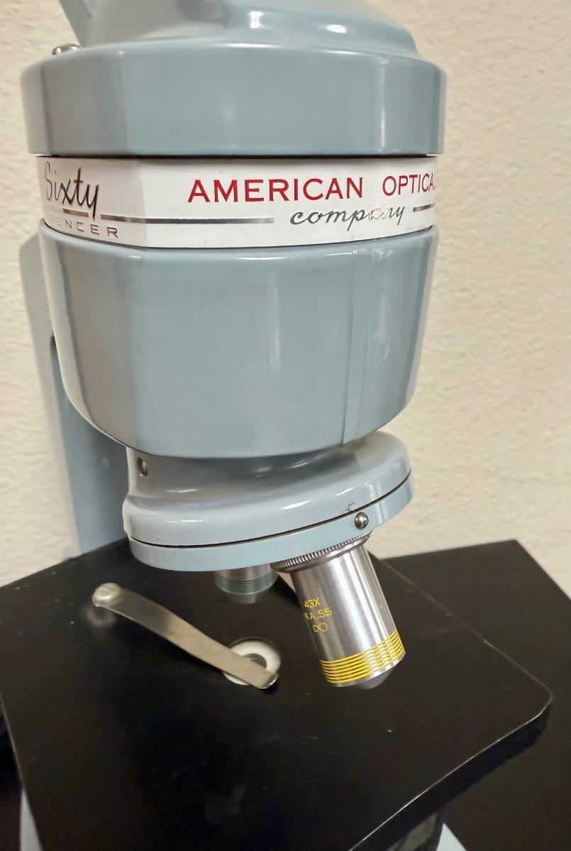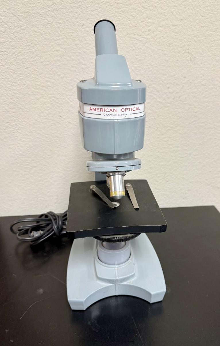 Includes 2 lenses: 43X and 10X. Electric light tested, works as expected. Optics and lenses are untested, but everything appears to be in working condition.