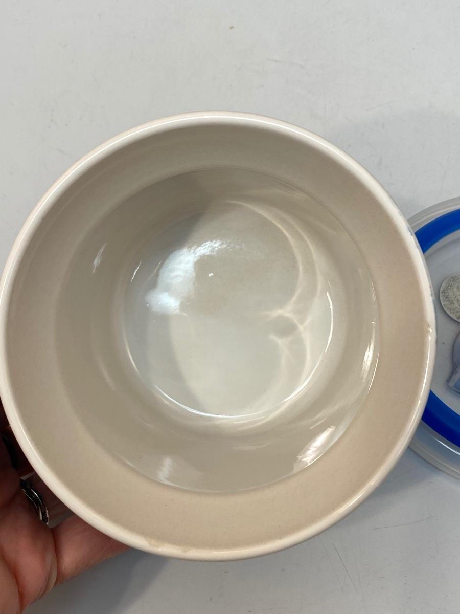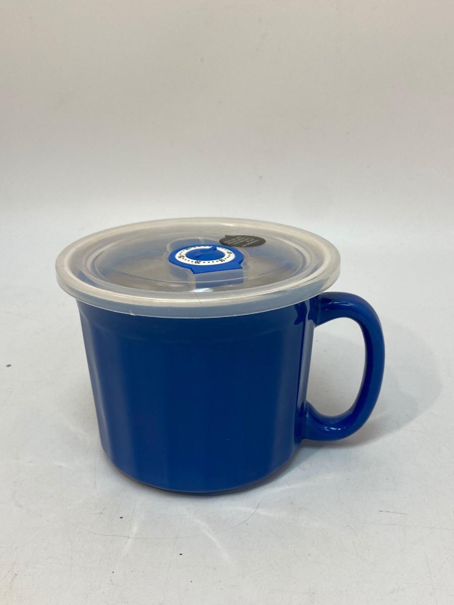 Blue Ceramic Handled Soup Mug Bowl with Plastic Lid