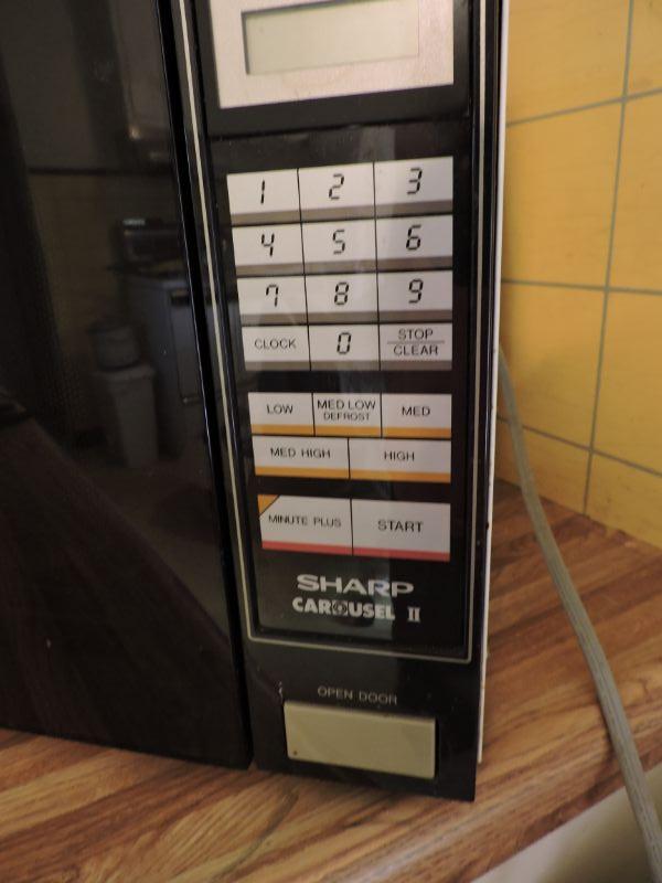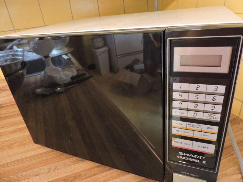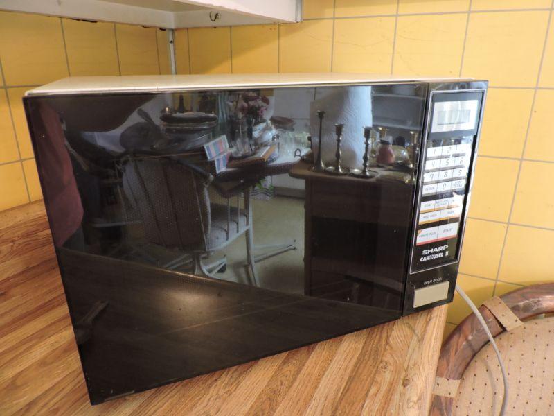A Sharp Carousel II microwave oven, untested. **Please read Terms and Conditions before placing a bid. Pick up is Saturday, November 30 from 9am to 3pm in Bridgeton, NJ. All sales are final. All sales are as is, where is. Please review all photos. Any props included in photos are not included in listing. All measurements are approximate.