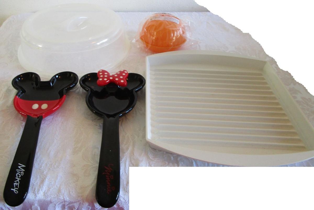 Microwave plate and cover, Mickey Mouse & Minnie Mouse spoon holders, onion keeper