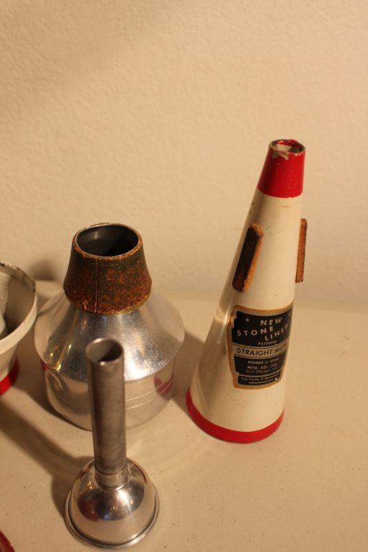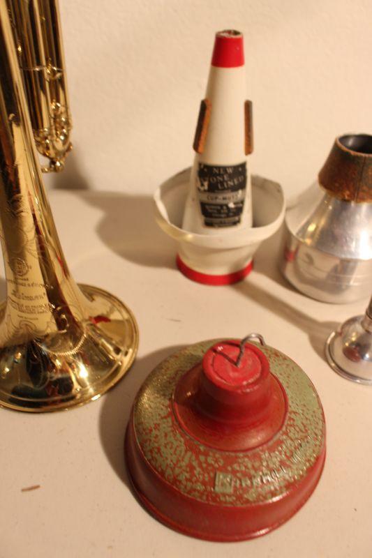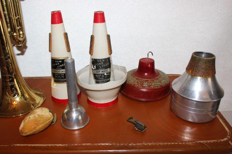 Mid 1950's 24A Trumpet Henri Selmer Paris Repose Vintage Case and Mutes-The case is worn, torn, and a zipper that is broken and will need to be repaired.