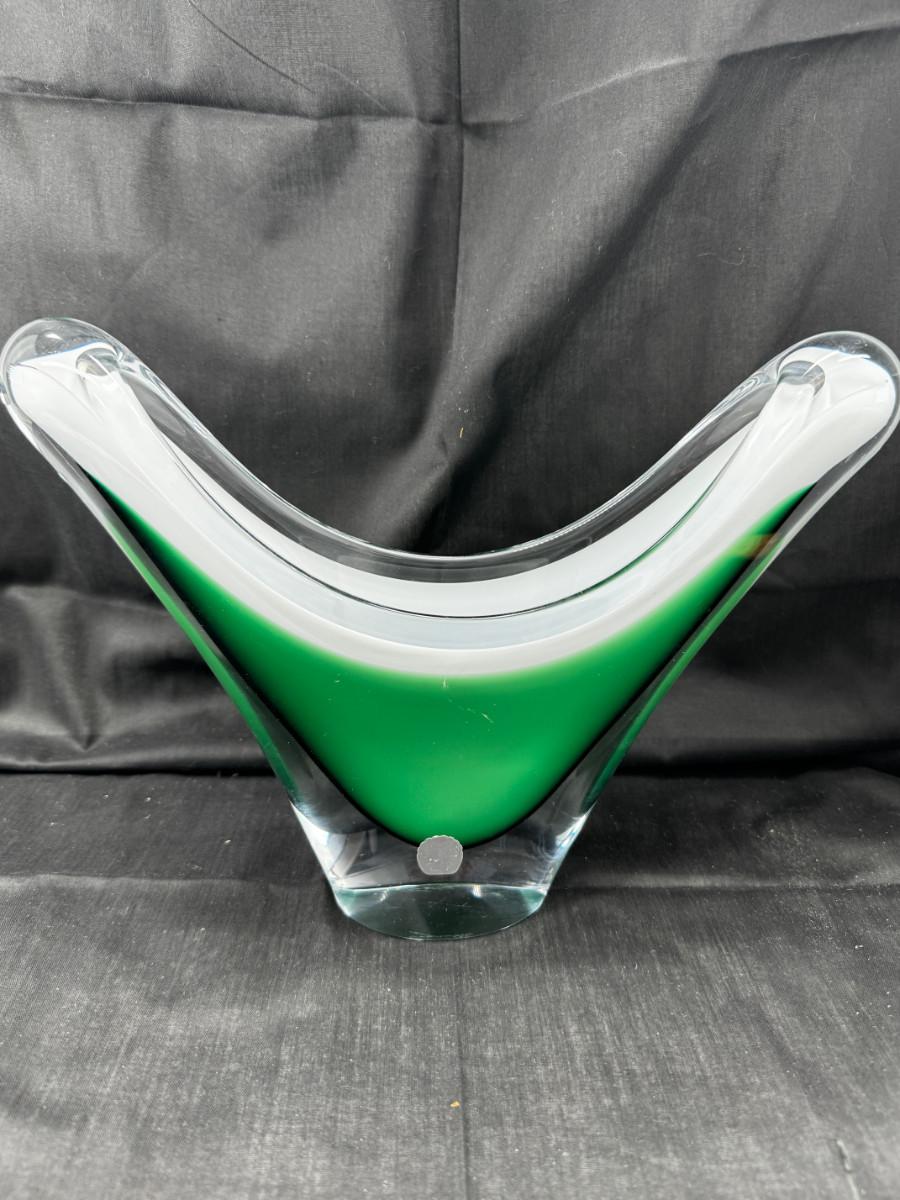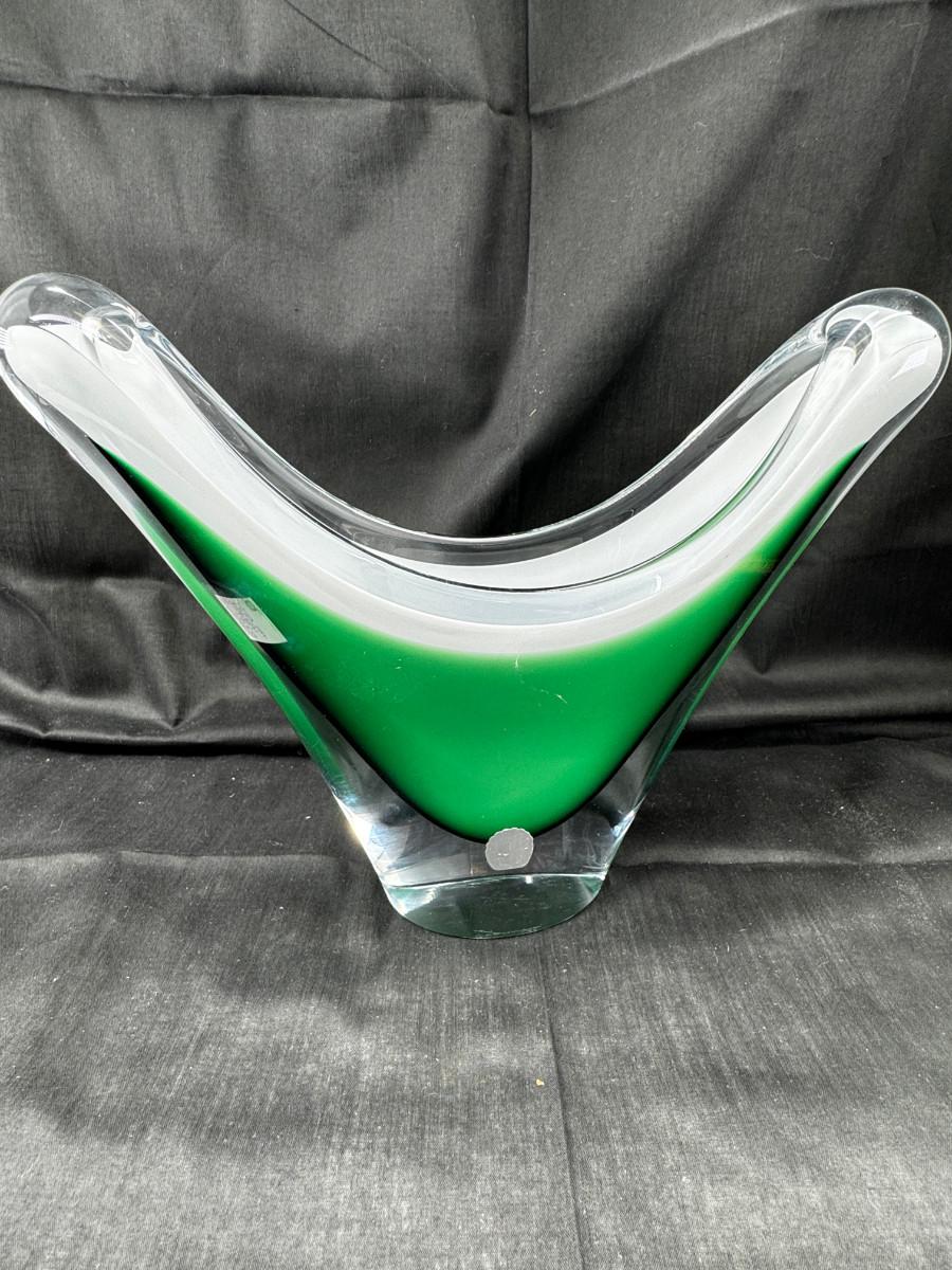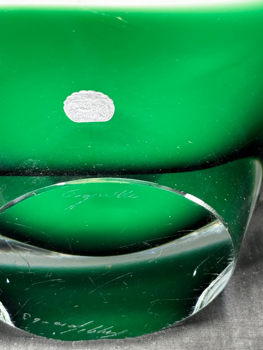 Flygsfors Coquille bowl, and it was created using the Sommerso technique. Paul Kedelv Green and white thick heavy glass