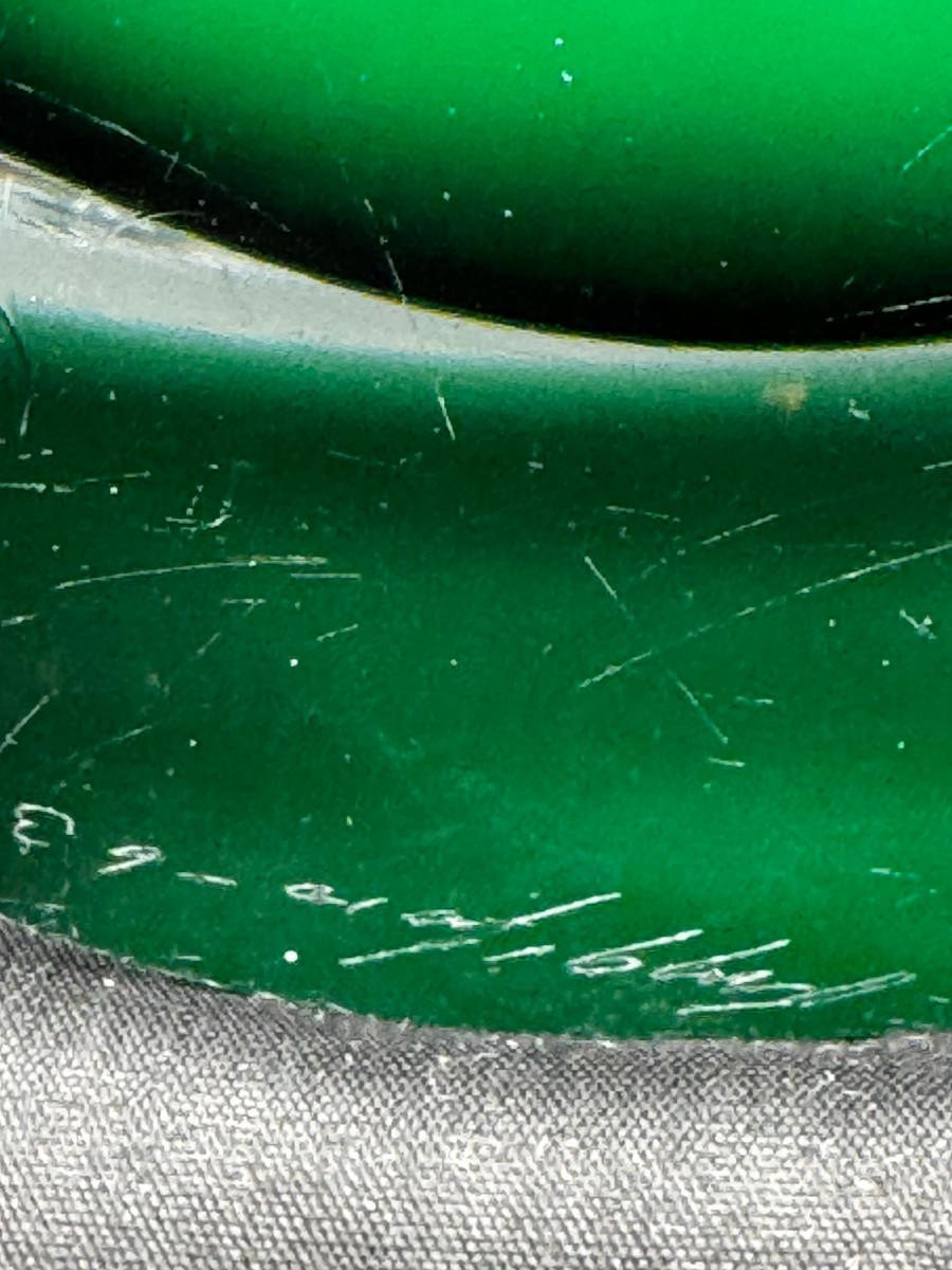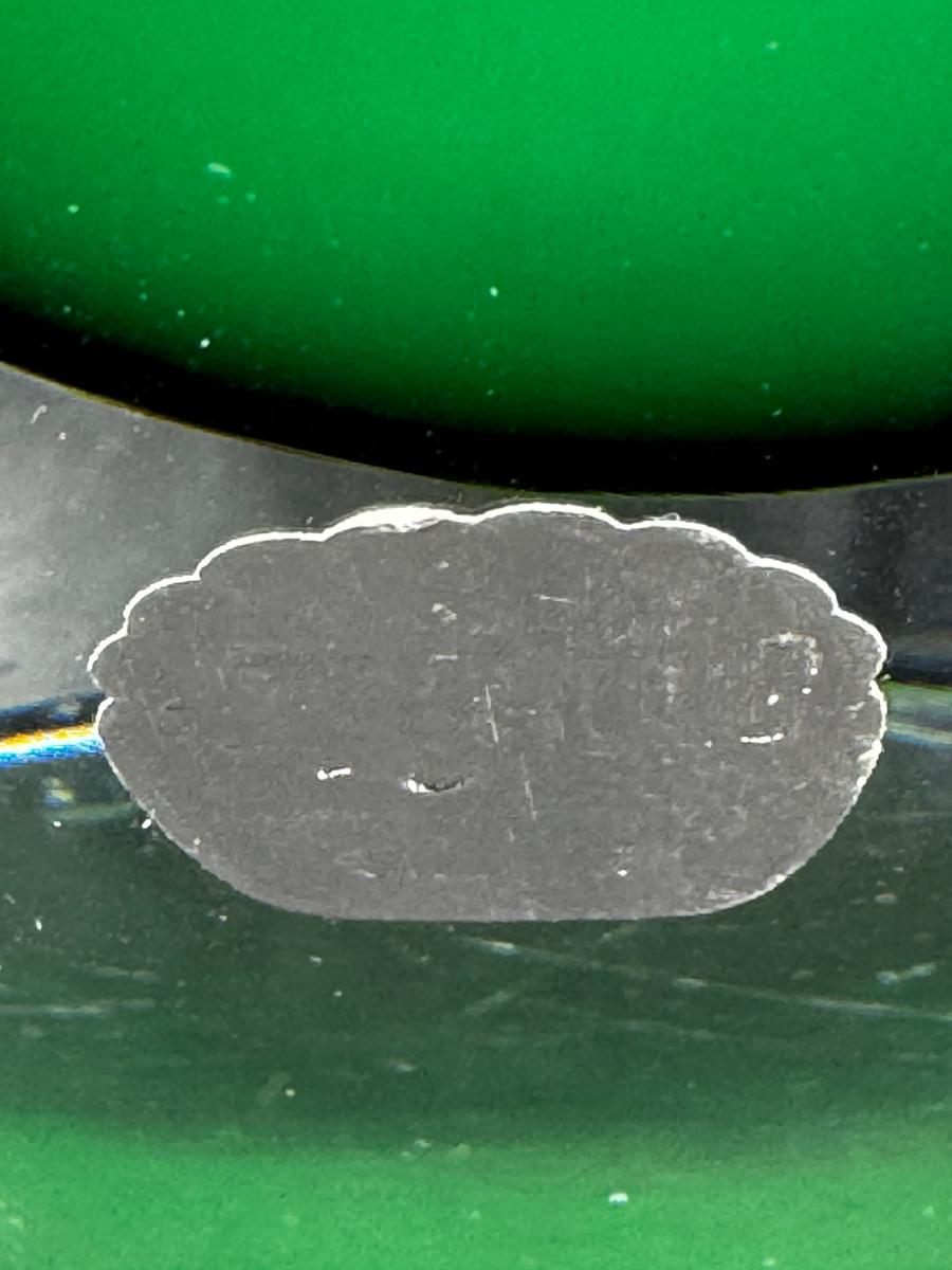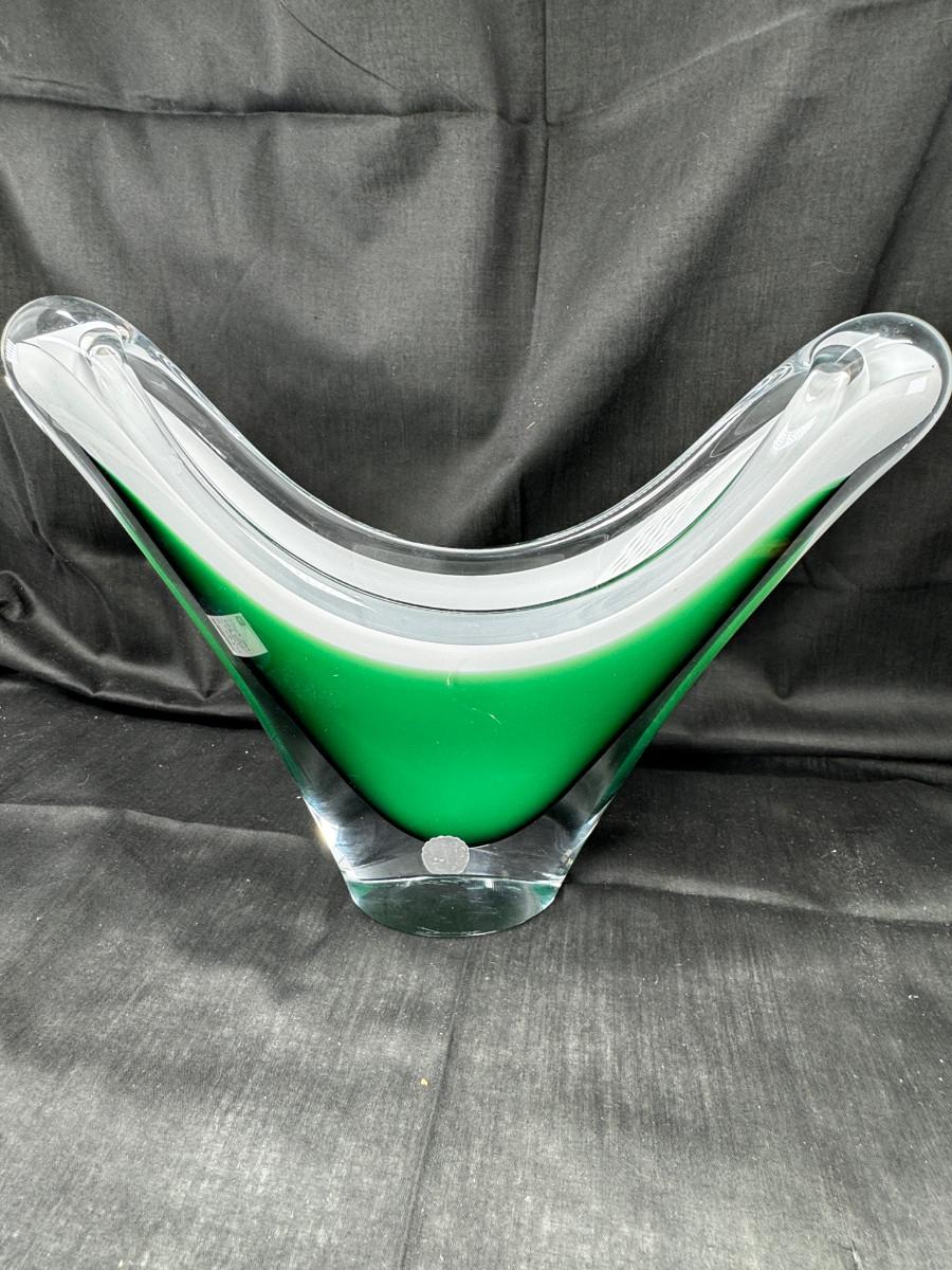 Flygsfors Coquille bowl, and it was created using the Sommerso technique. Paul Kedelv Green and white thick heavy glass