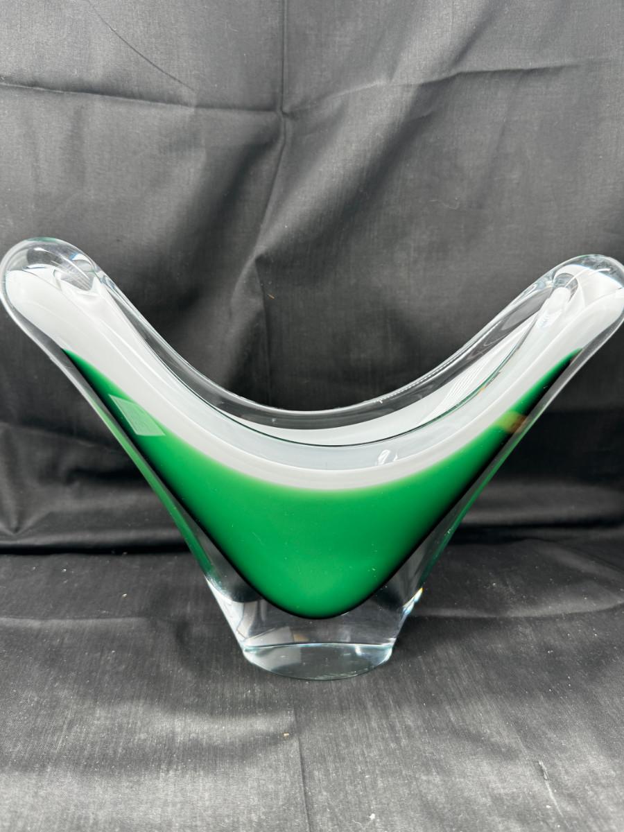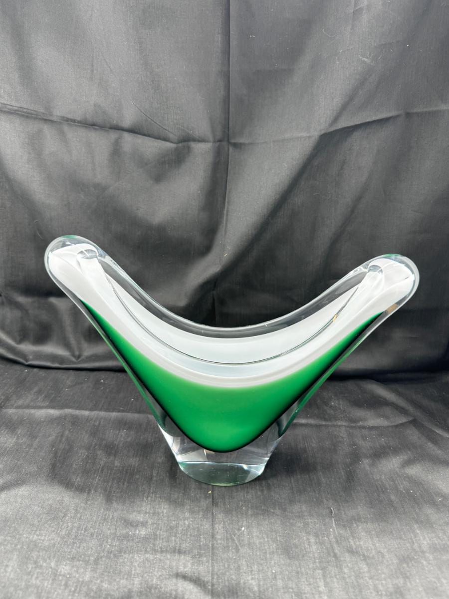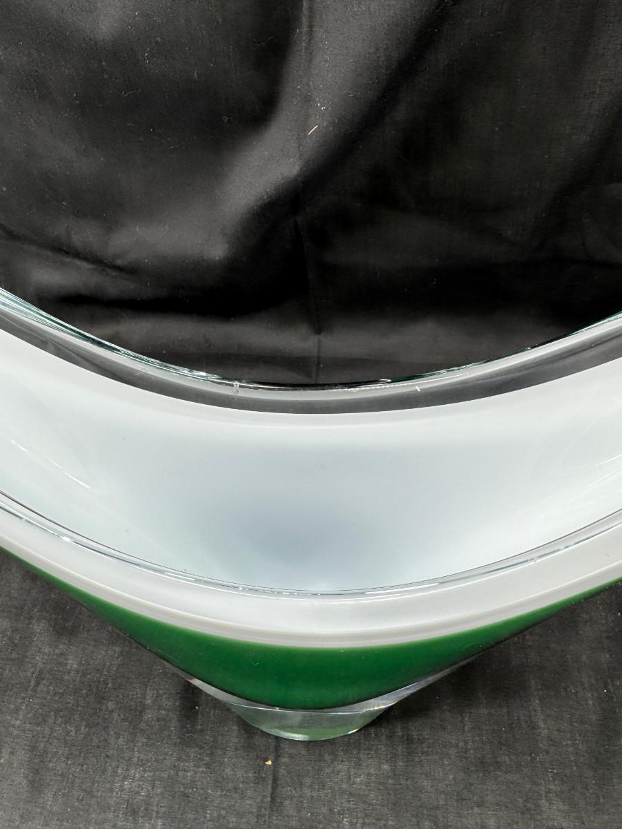 Mid 1950s Swedish glass Vase centerpiece bowl Green White overlay