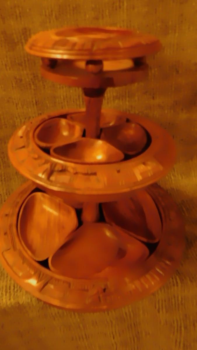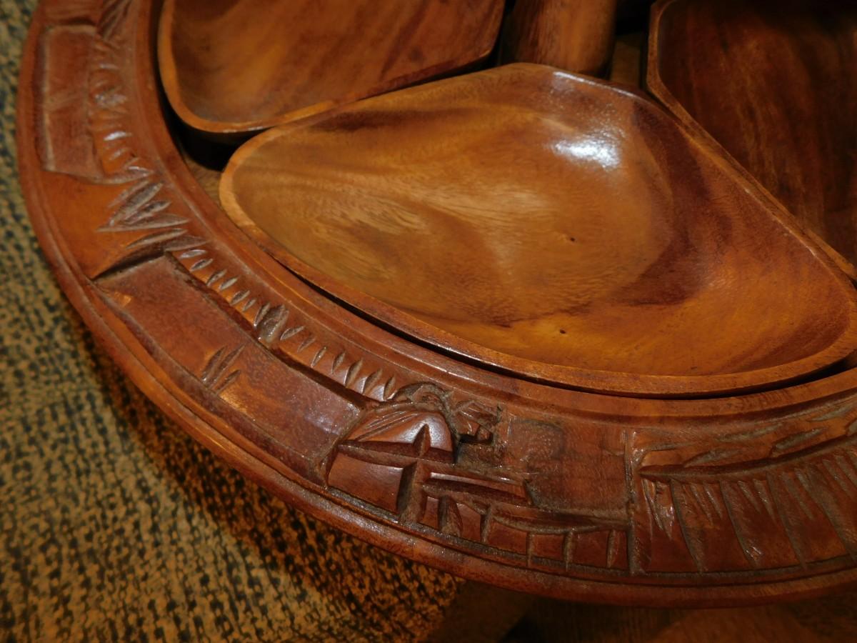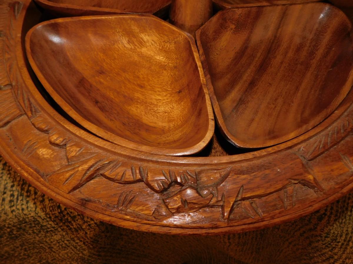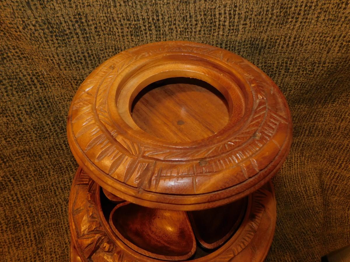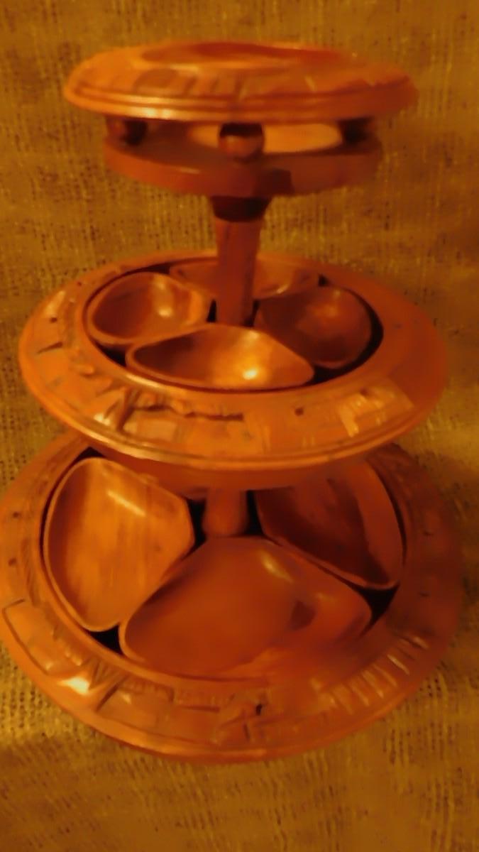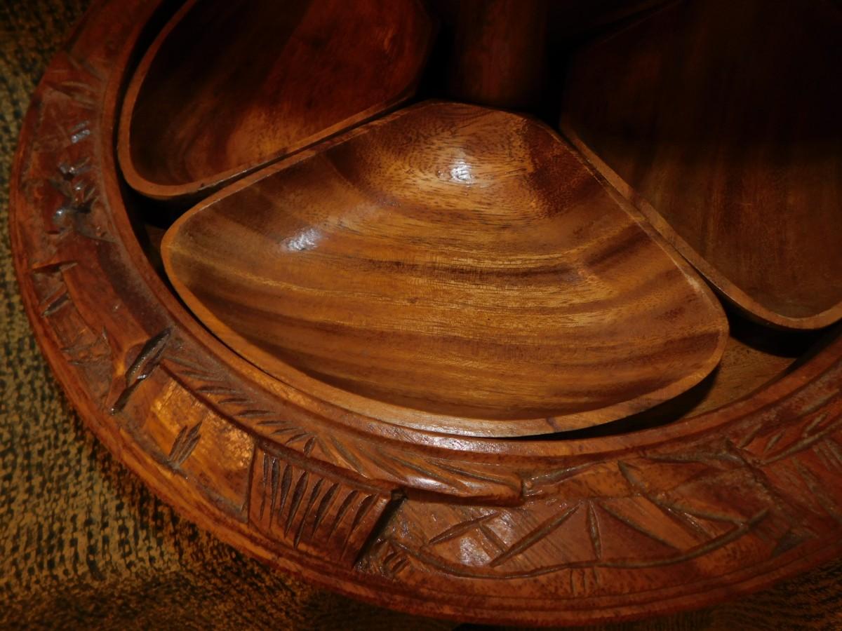 Mid 20th Century Monkey Pod 3 Tier Appetizer/Condiment Centerpiece