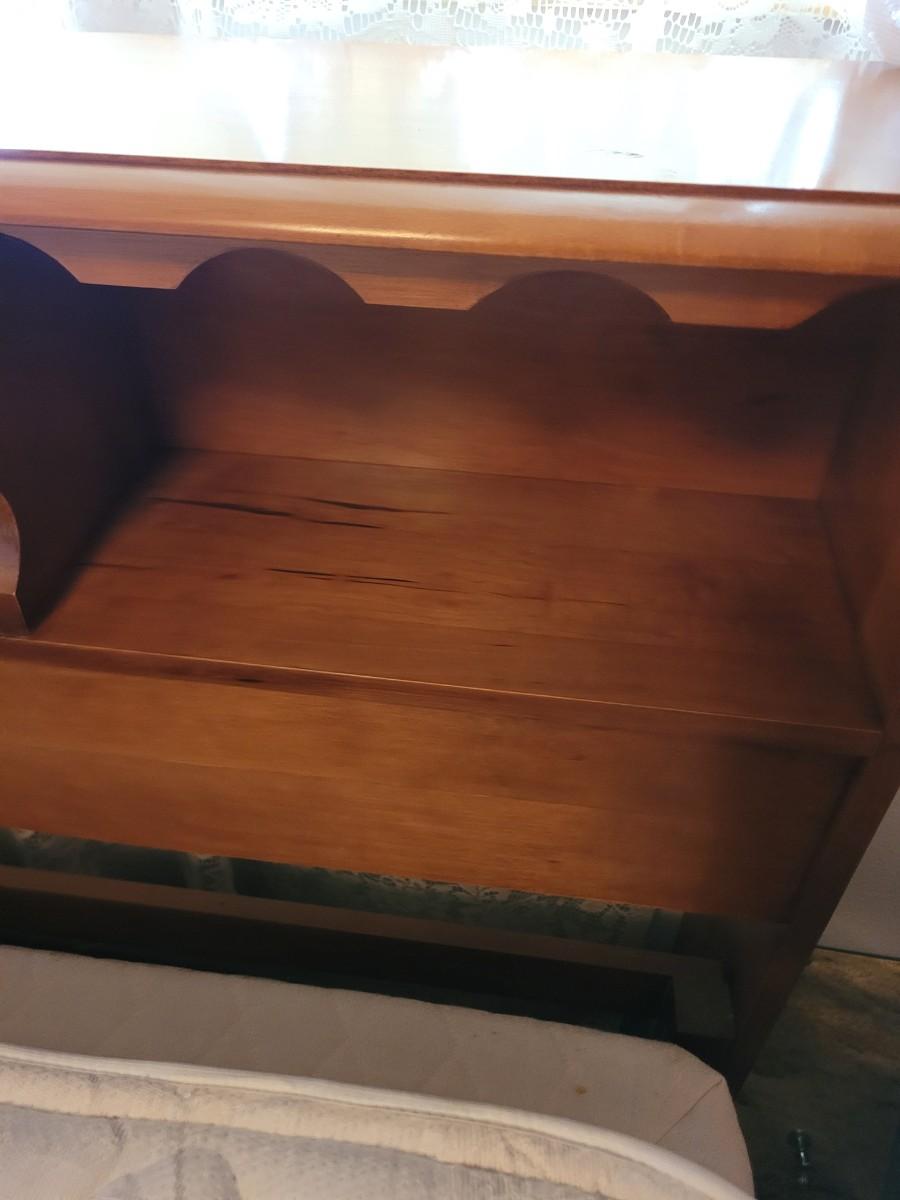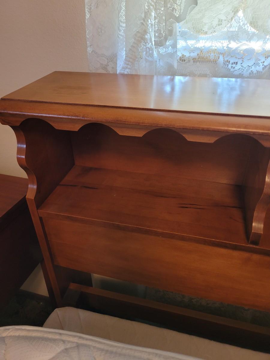 Mid century 1950 pecan bed, no mattress or box spring