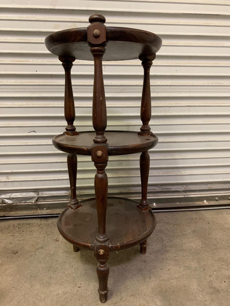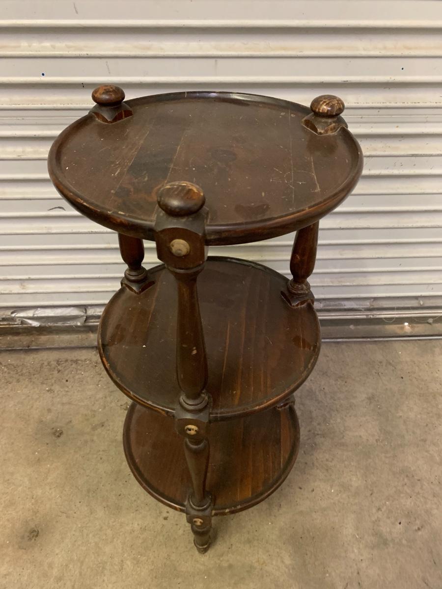 Stand Alone 3 tier Mid Century Shelf. Does have imperfections. 12” diameter / 27” H