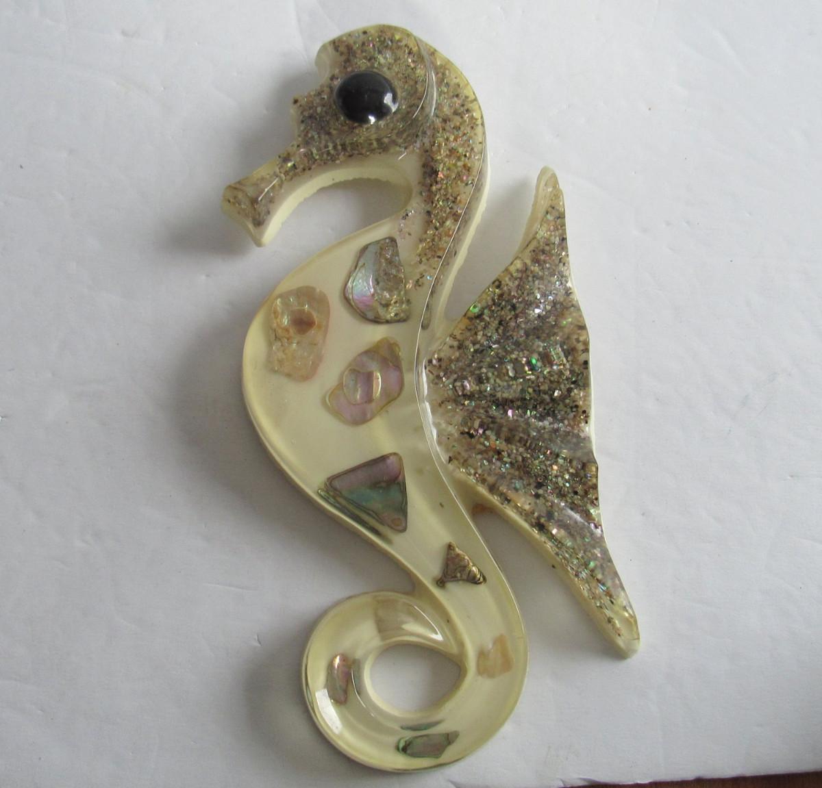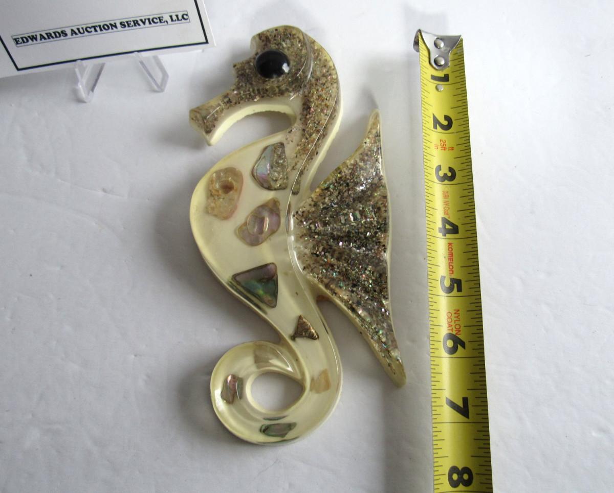 Mid Century Acrylic and Abalone Shell Seahorse Wall Plaque