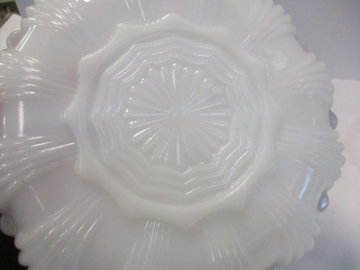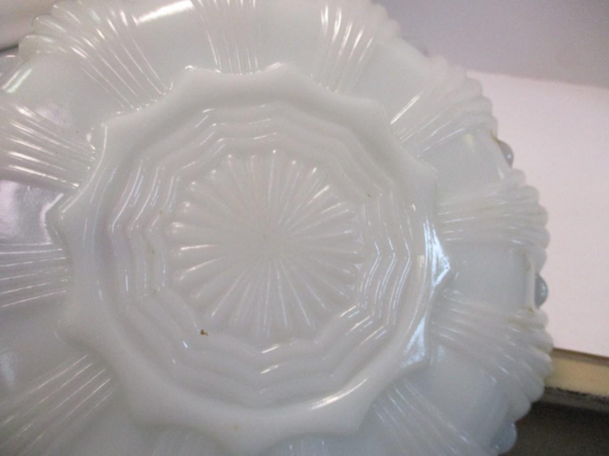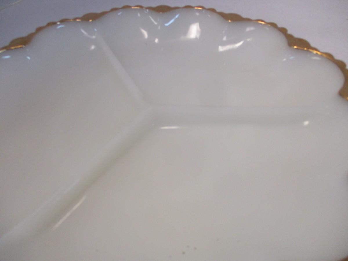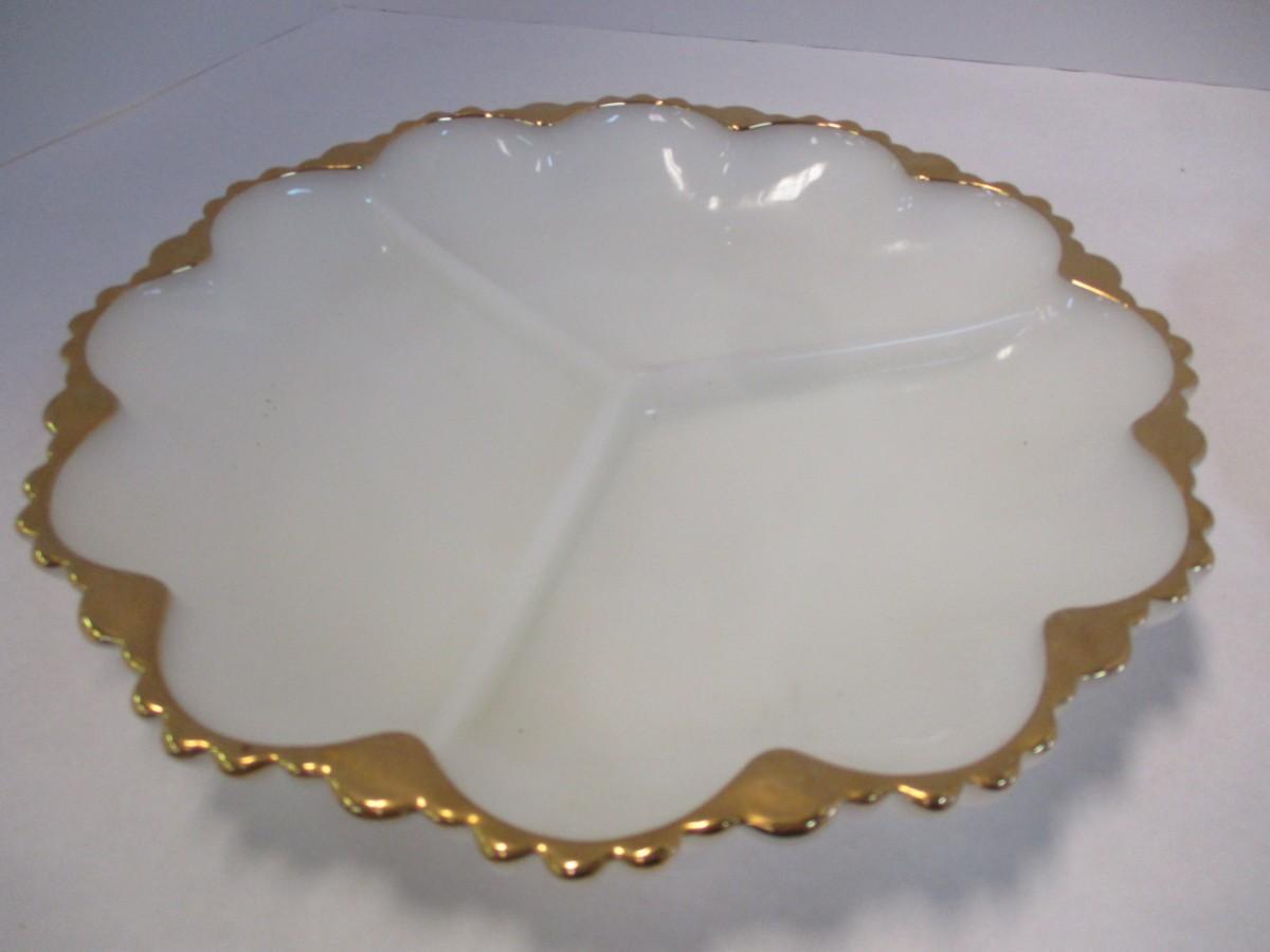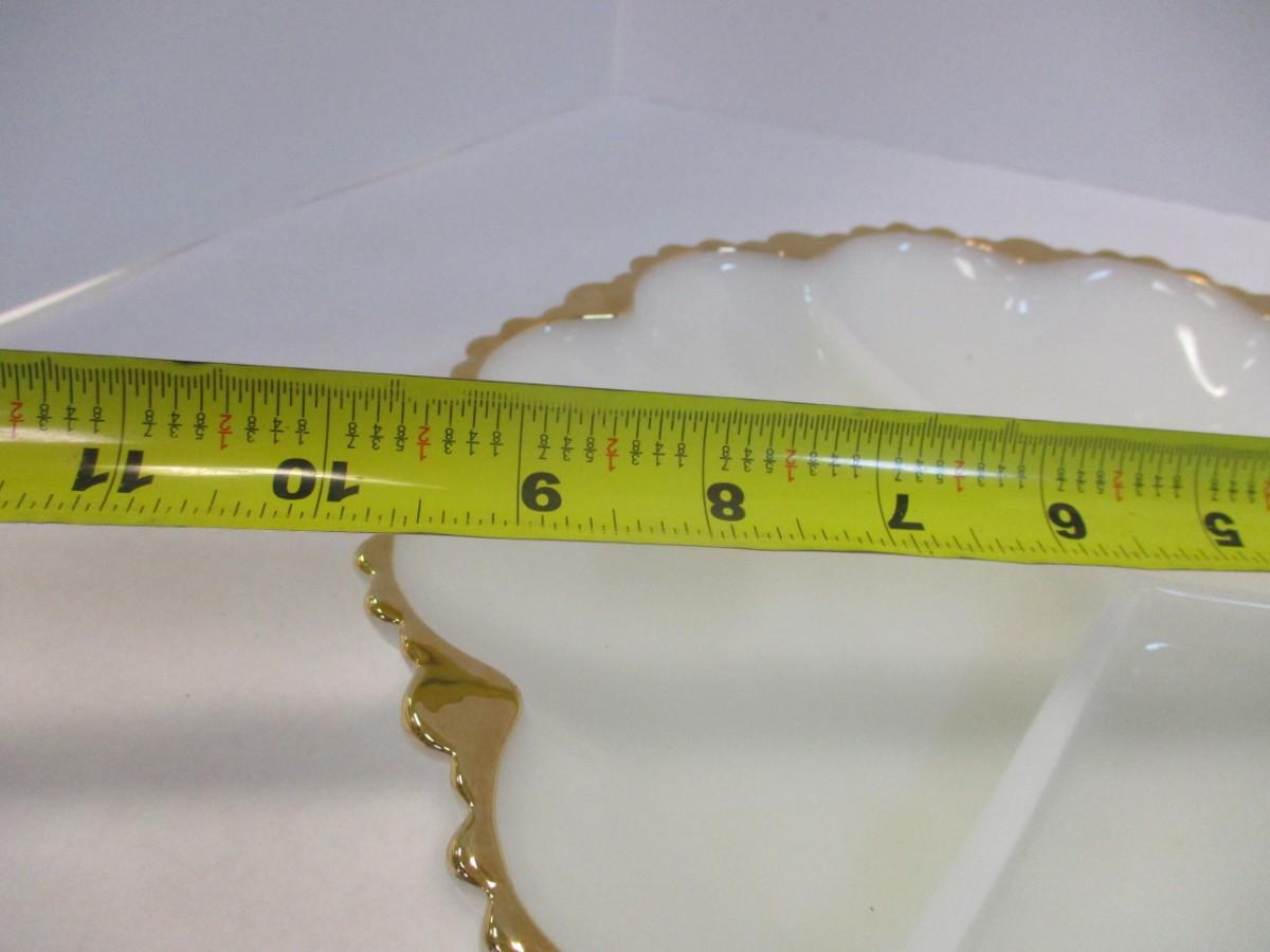 Mid Century Anchor Hocking Milk Glass Gilded Gold Edge Divided Platter & Deviled Egg Platter