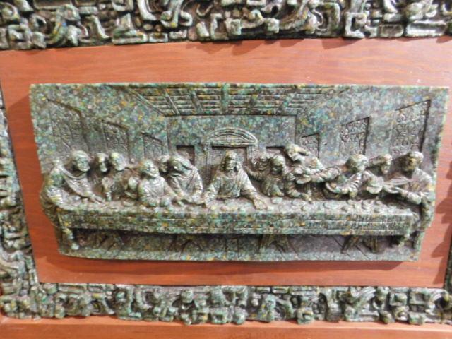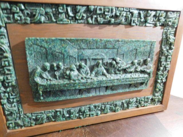 Mid Century Art 'Last Supper' Crushed Jade Malachite Wall Decor