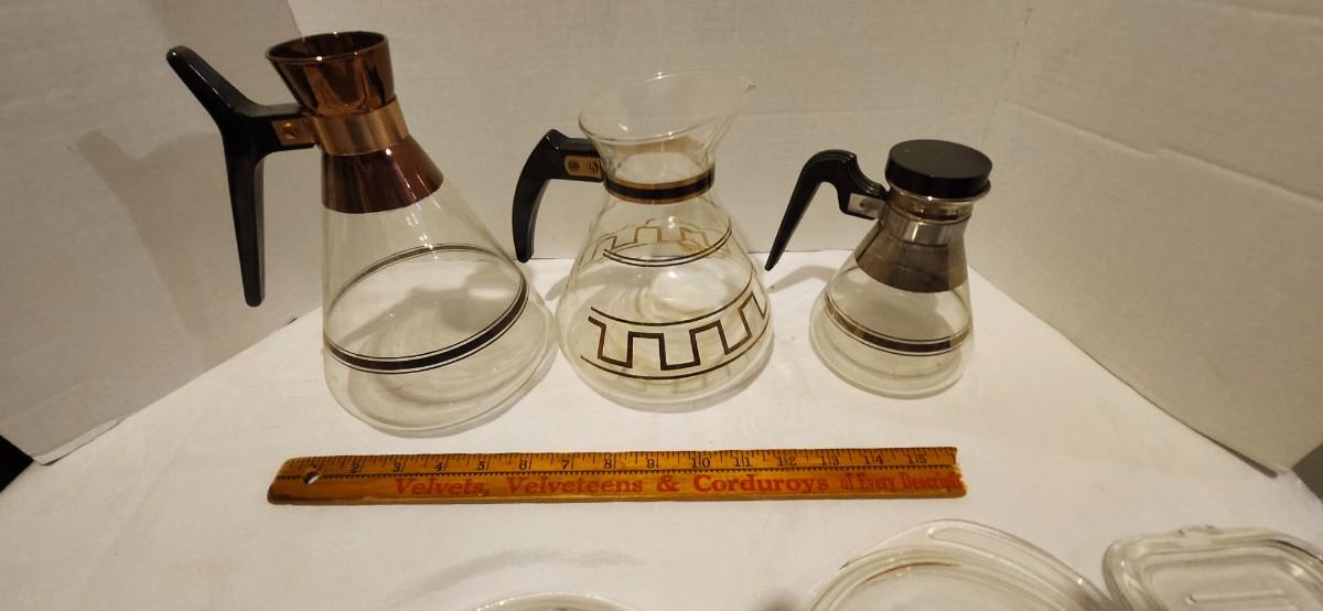 Mid Century Atomic Glass Coffee Pot Carafe and Refrigerator replacement lids