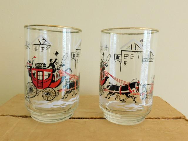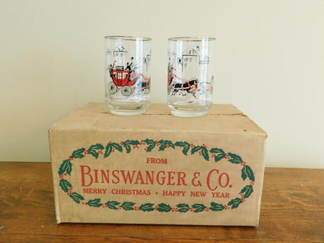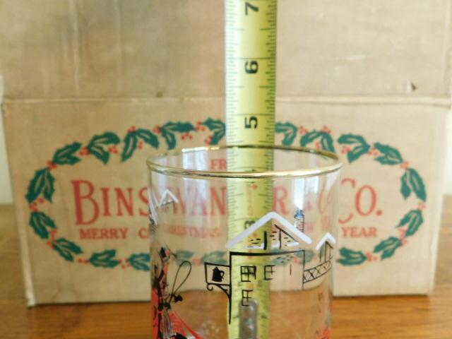 Mid Century Binswanger & Co Collector Christmas Holiday Drinking Glasses with Original Box 6pcs