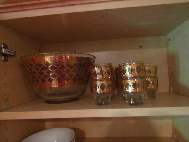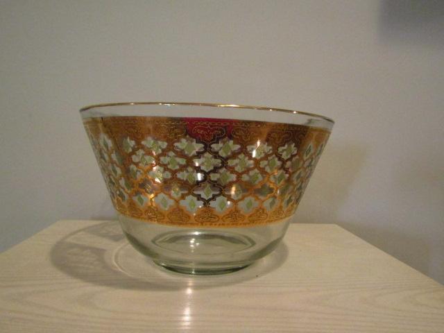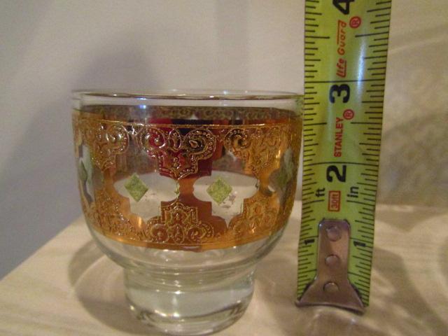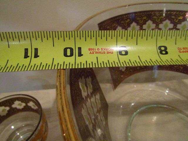 Mid Century Bowl and 12 Cups by Culver Ltd.- 22 kt Gold and Green Diamond Pattern