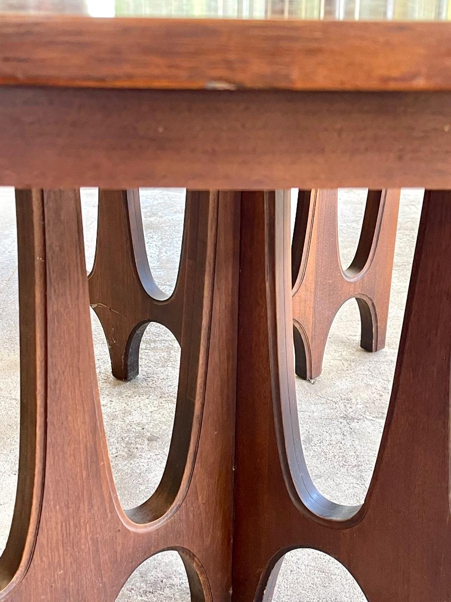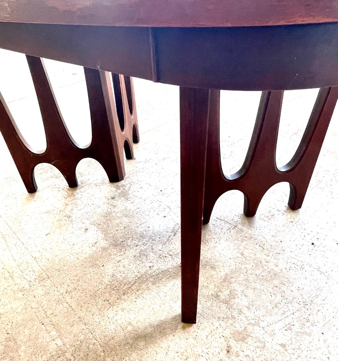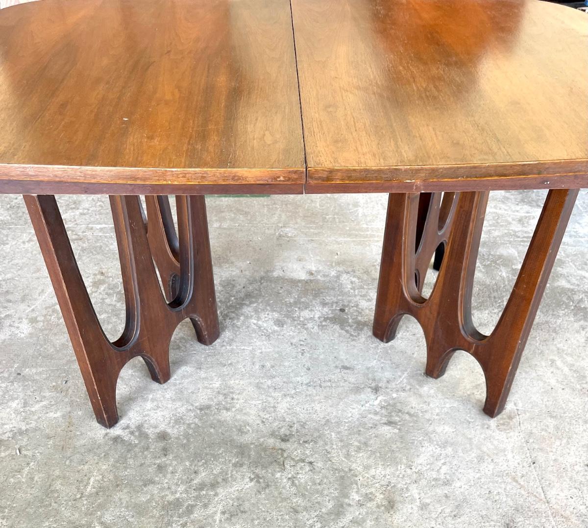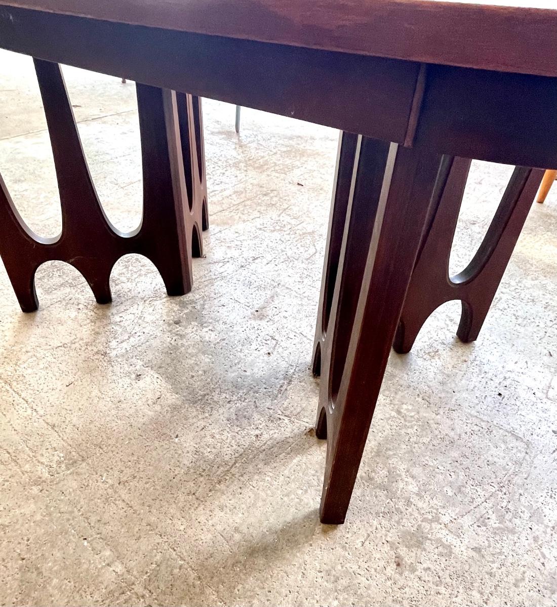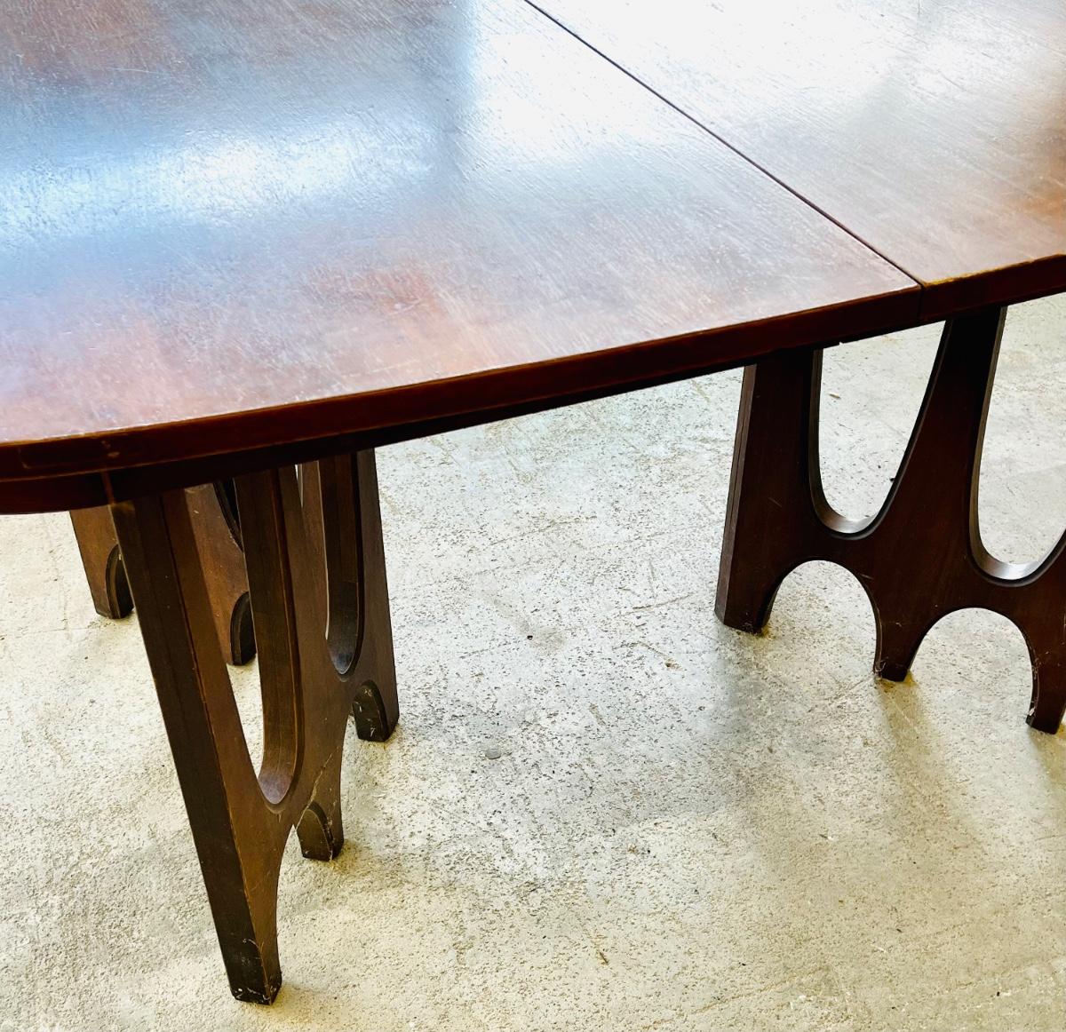 Wow, what a great MCM piece for MCM lovers! Get this for your mid century space and make a statement! This table has a few issues but could be used as is! The edge damage is not great but it’s really not terrible! There is also a scratch pictured. This table has been in storage for a very long time and I did nothing to it before taking pics. It’s possible that some oil could improve the appearance greatly and remedy the scratch a bit. Last 2 pics are pics of the leaf. The leaf also has a scratch. Despite the issues it’s a phenomenal piece of MCM decor. Don let this get away. You will regret it!