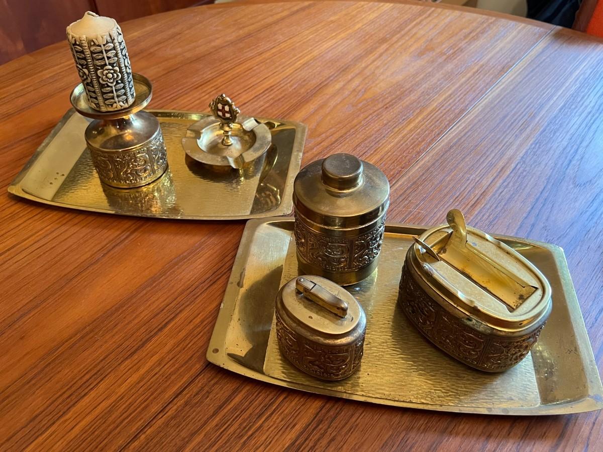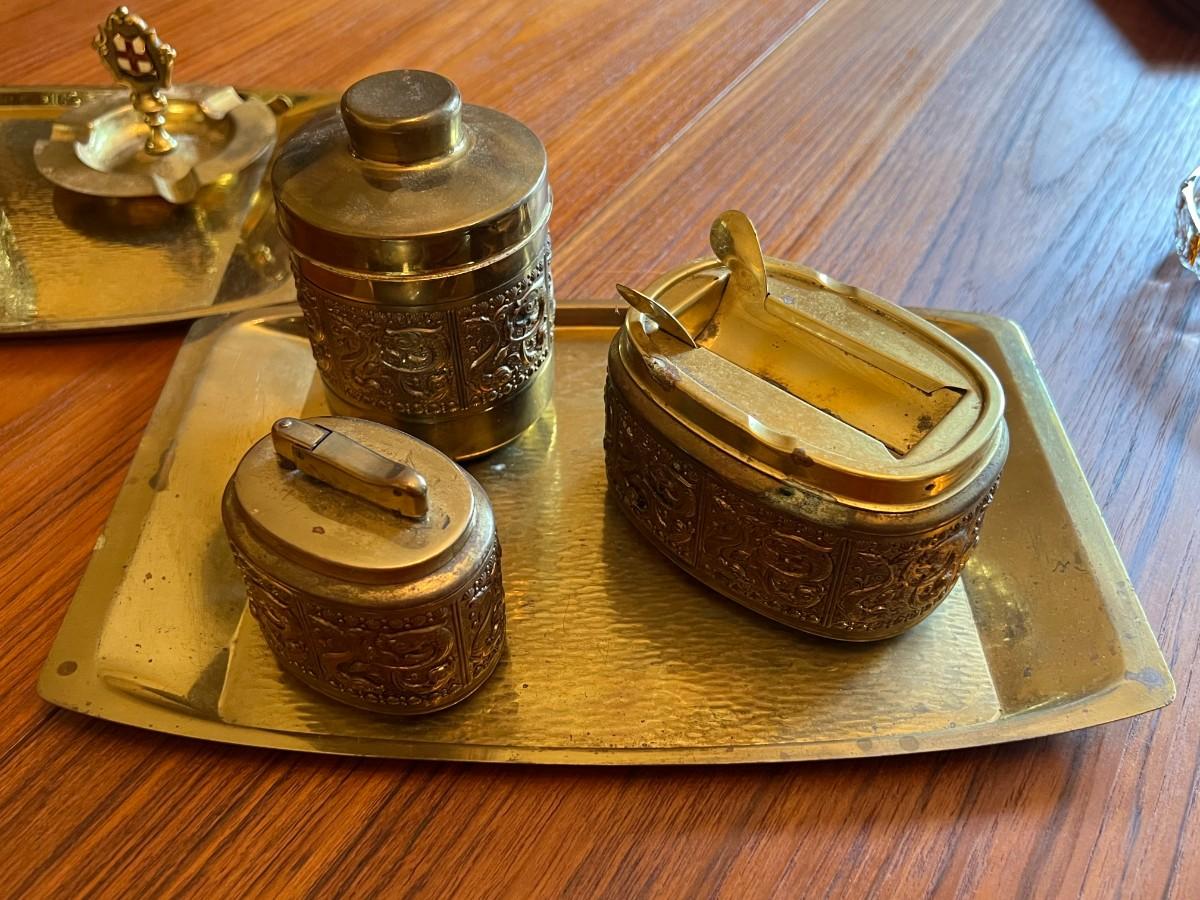 Mid Century Brass Smoking, Cigarette Set- Erdhard and Sohne 1960s