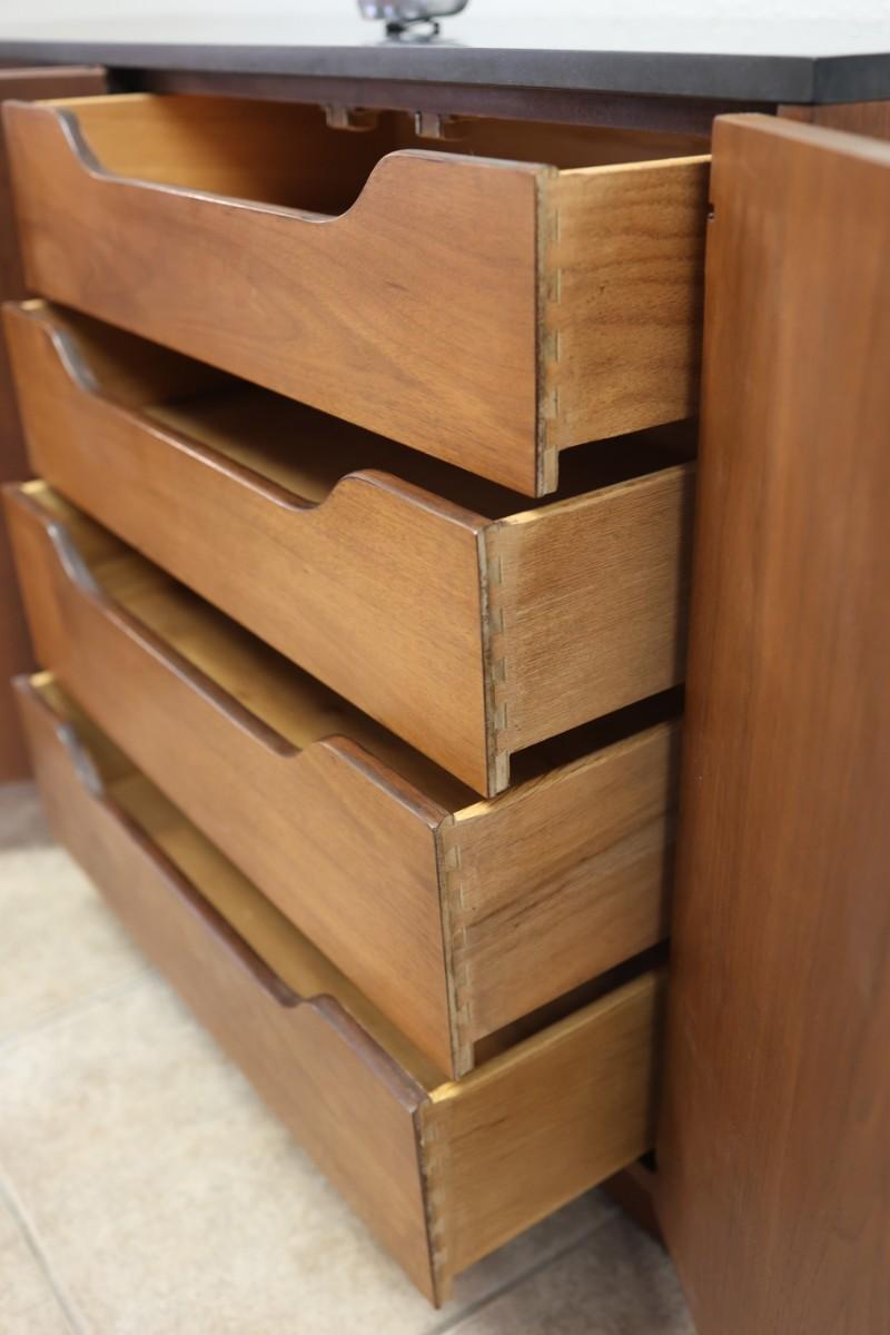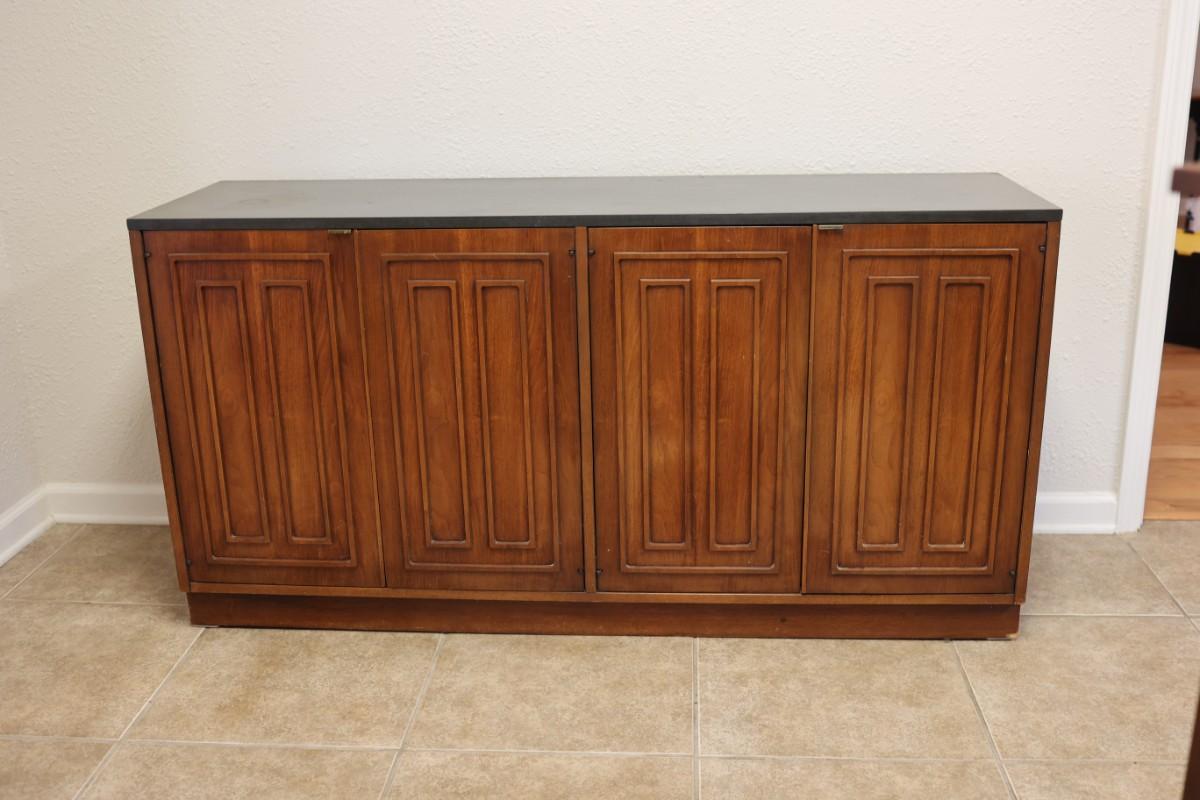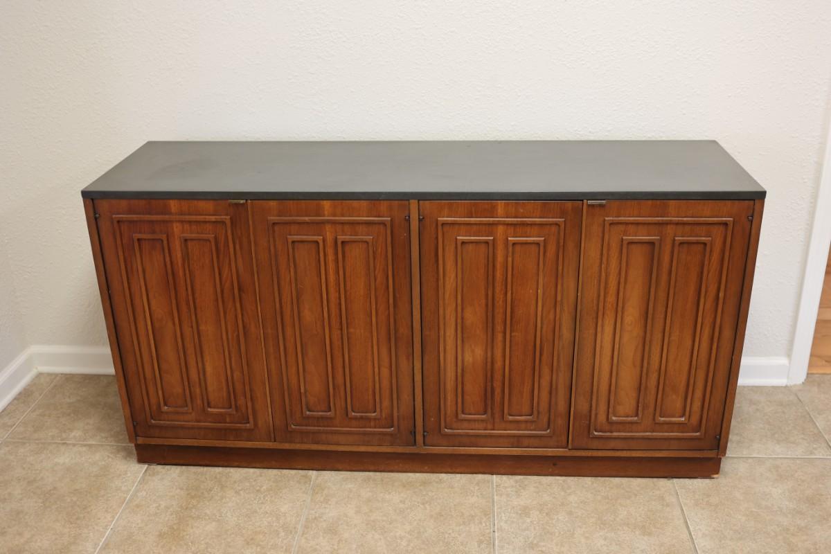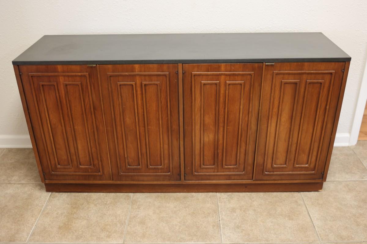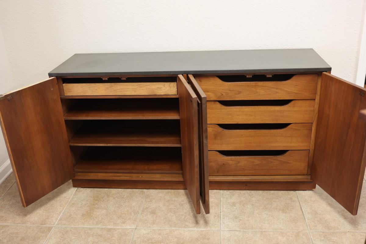 Mid Century Broyhill Sculptra Walnut And Slate Buffet Chest